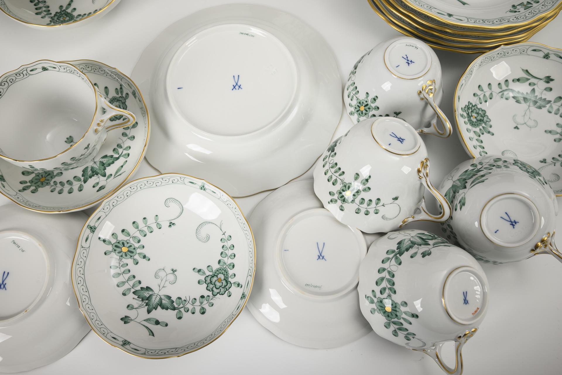 20 Teile eines Kaffeeservice "Indisch Grün". Meissen.