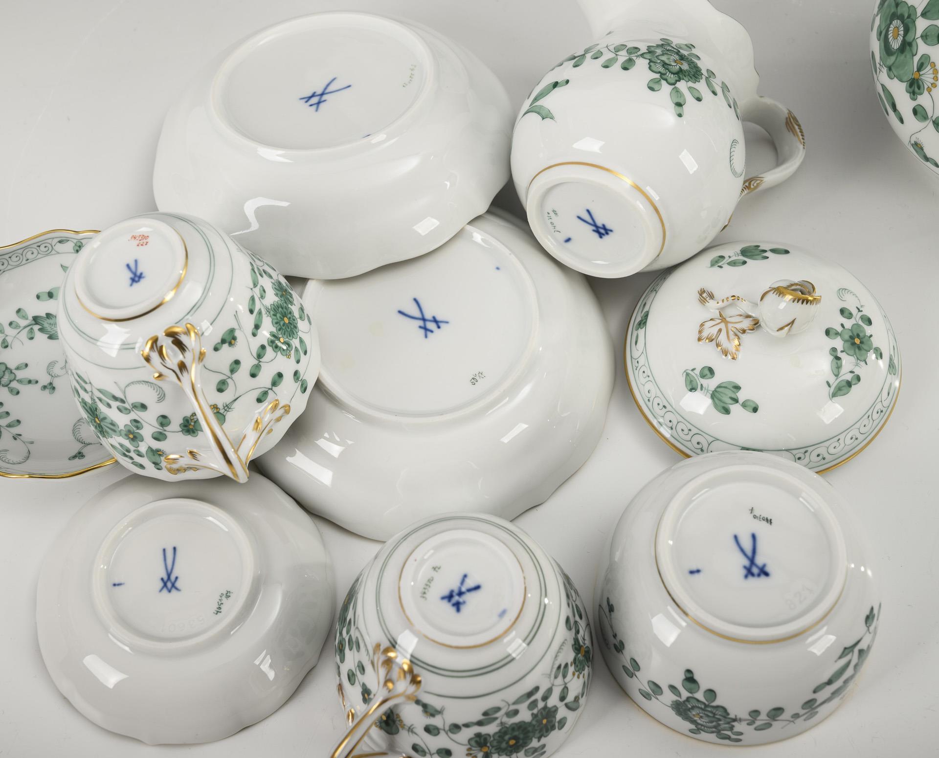 10 Teile eines Mokkaservice "Indisch Grün". Meissen.