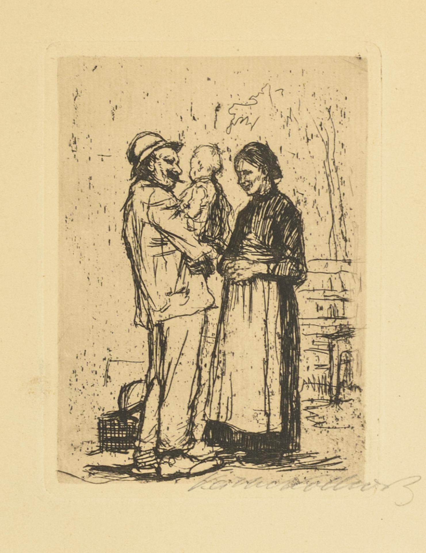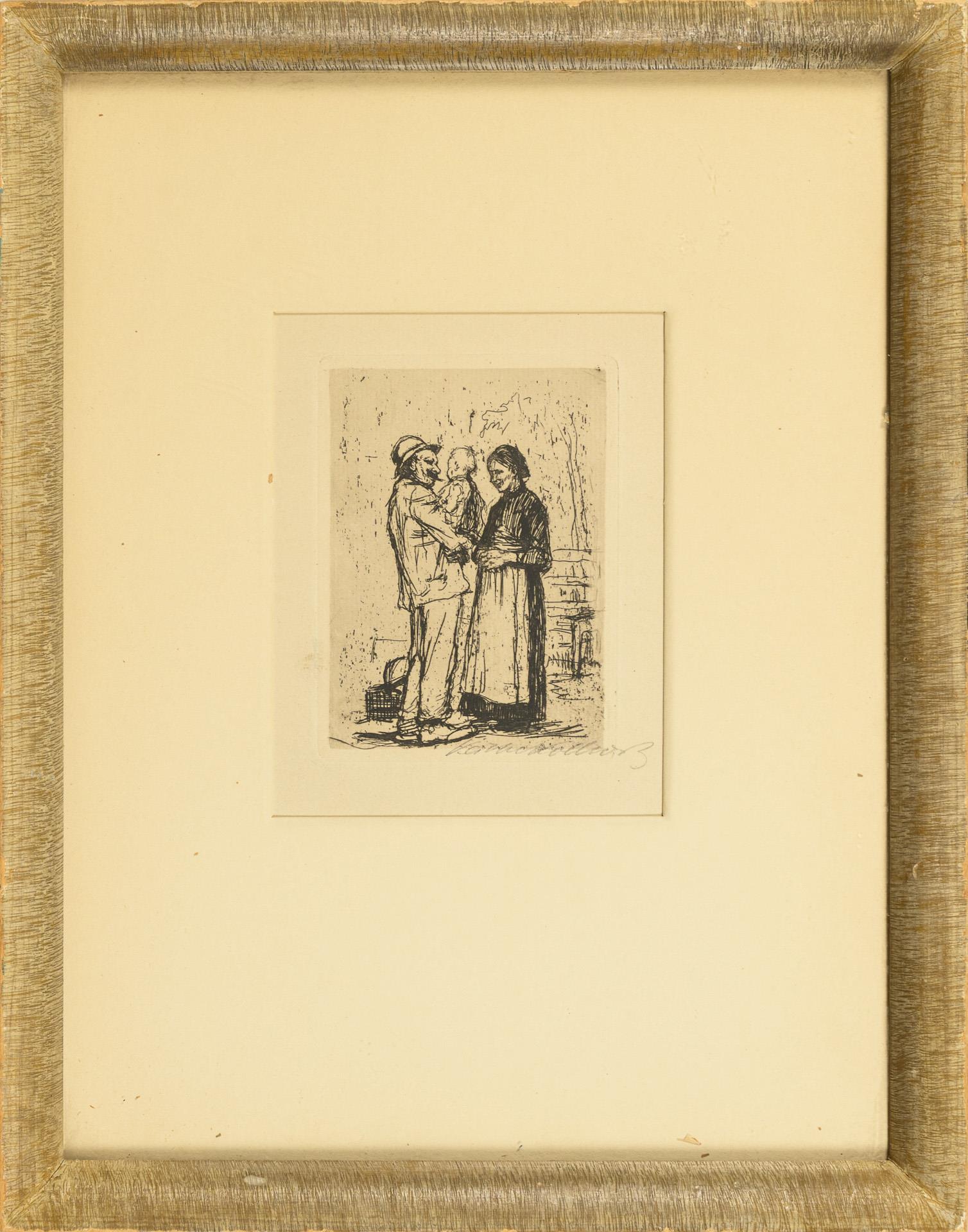 Als Titel auch 'Begegnung" genannt. Schöner, kräftiger Druck. Blatt mit Passepartout und Rückwand verklebt. Sichtbarer Teil (15 x 11,5 cm) in gutem Zustand.