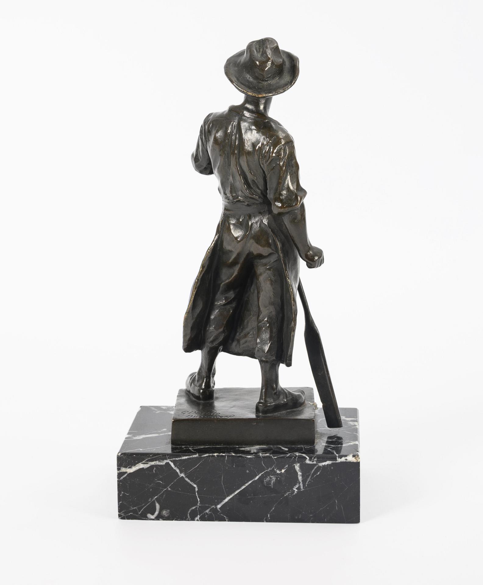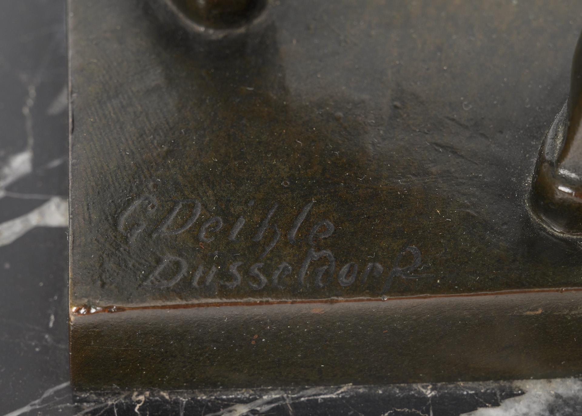 Bronze patiniert, schwarze Marmor-Plinthe. Bezeichnet mit Zusatz "Düsseldorf". H 26,5 / 31,5 cm. 3,6 kg.