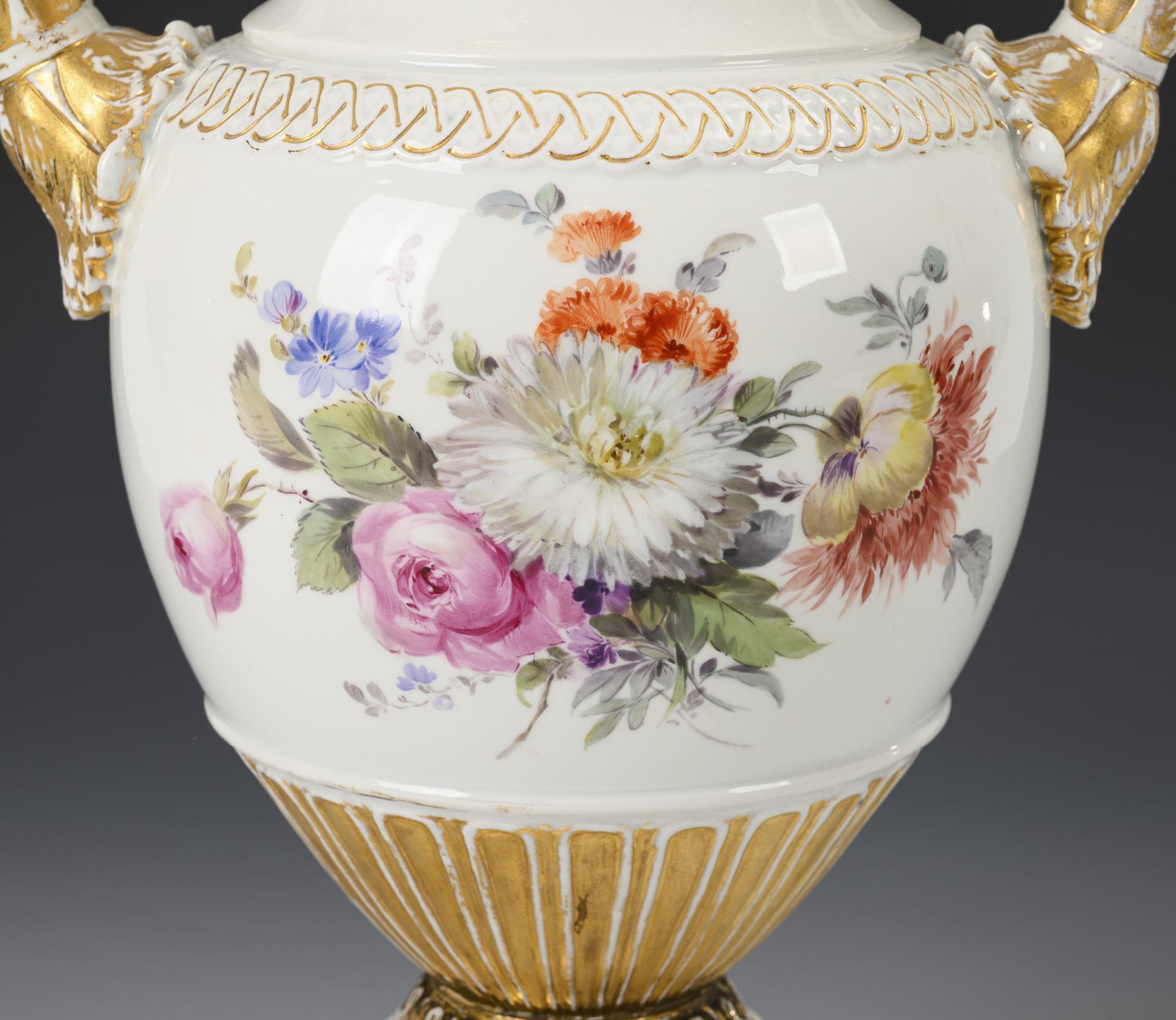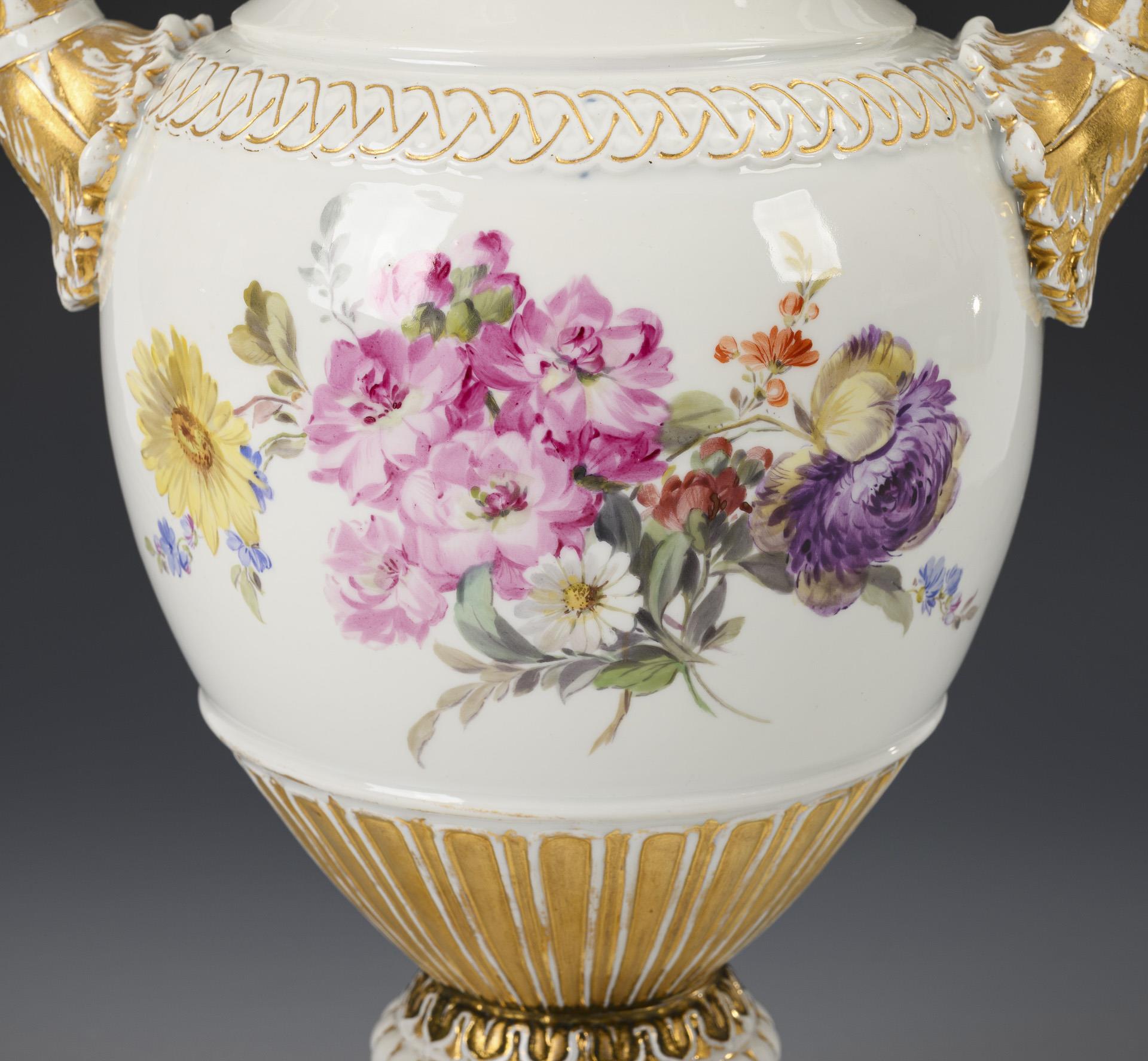 Schlangenhenkelvase mit Blumenmalerei. Meissen.