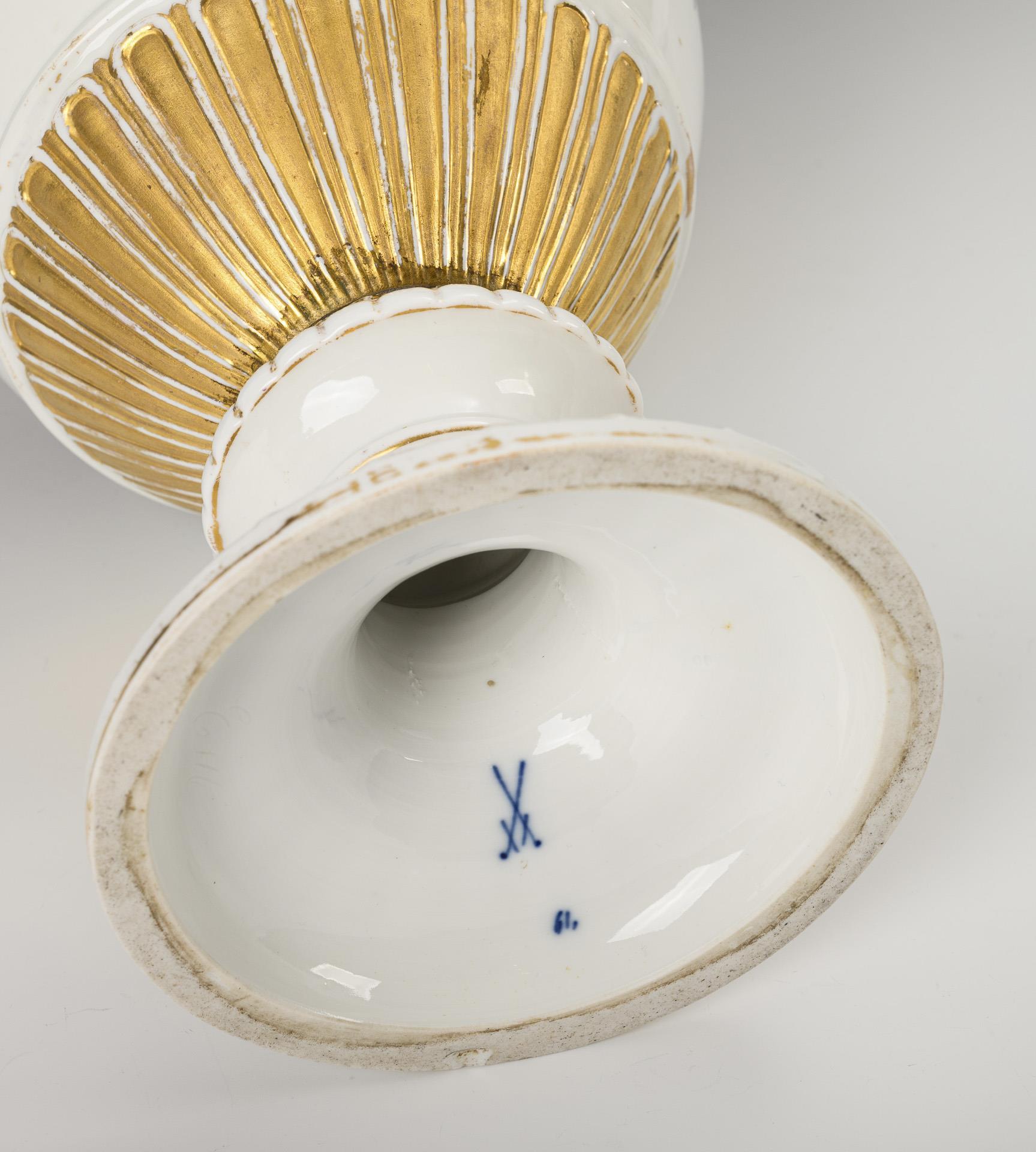 1 Henkel mit restauriertem Haarriss, 1 Henkel mit restauriertem Ausbruch, Goldbronzierung berieben.