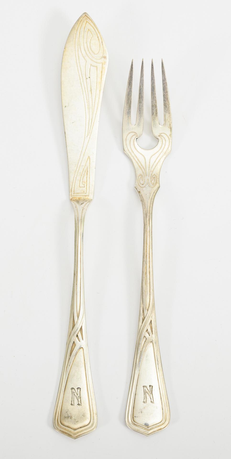 Versilbertes Jugendstil-Fischbesteck.