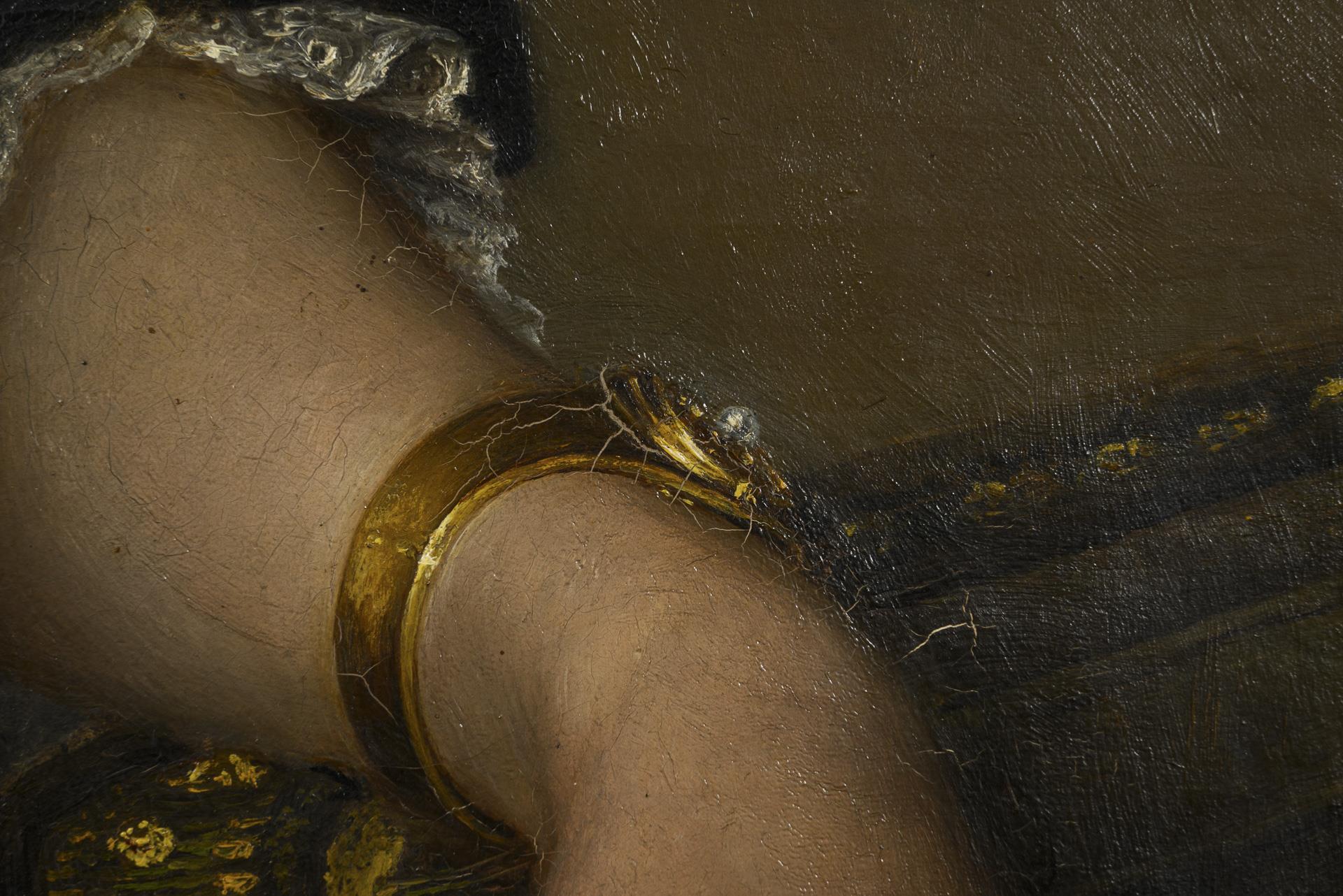 92 x 65 cm. Gerahmt : 135 x 100 cm (defekter ajour geschnitzter Goldstuckrahmen); 6,8 kg.