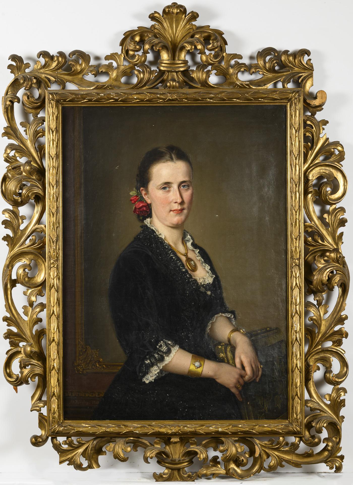 Frauenbildnis im ajour geschnitzten Prunkrahmen