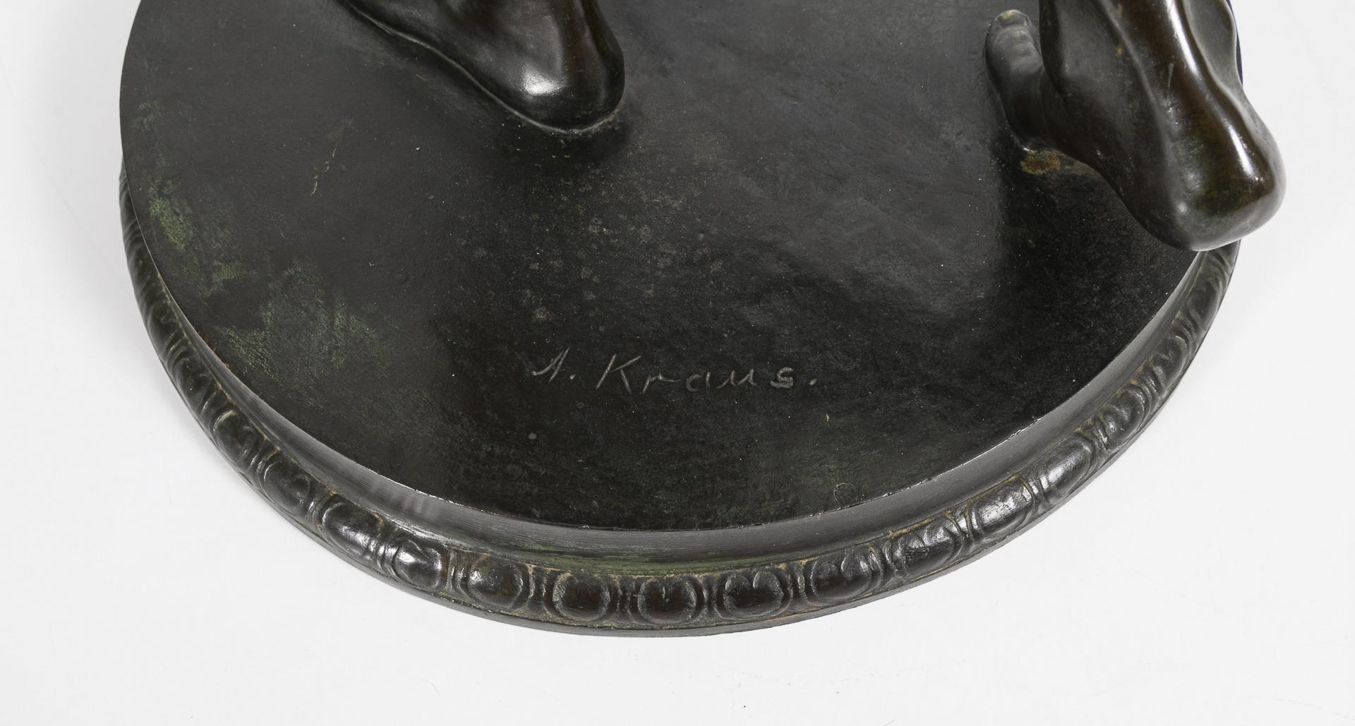 Kraus studierte an der Akademie Berlin, wo er Meisterschüler von Begas war. 1900 erhielt er den Staatspreis der Preußischen Akademie der Künste für ein fünfjähriges Rom-Stipendium. Hier entwickelte er einen eigenen Stil, der den Neoklassizismus mit der Moderne verband. Er war Mitglied der Berliner Sezession und der Freien Sezession. 1933 wurde er Präsidialrat der Reichskulturkammer. Das 1904 in Rom entworfene Werk (große Version mit 149 cm) erhielt 1906 den Müller-Preis und wurde von der National-Galerie in Berlin erworben. Die Figur wurde in verschiedenen Größen gegossen; eine Version von 1909 wurde in Leipzig vor dem Bildermuseum aufgestellt. Alle Lose mit einem Limit (Startpreis) von mind. 1.500€ werden mit der Art Loss Register Datenbank abgeglichen.