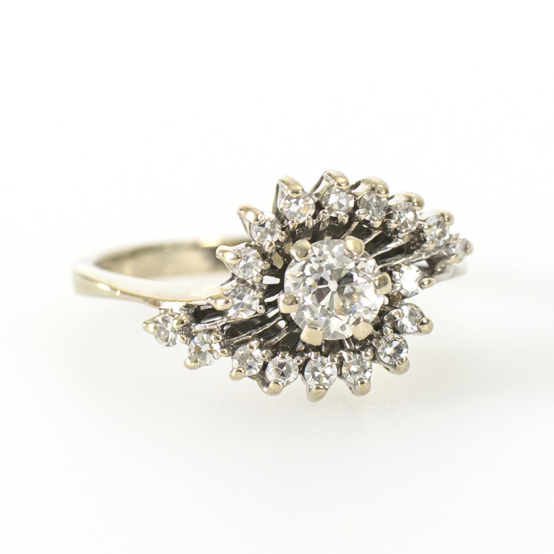 Weißgold 14K (585) gestempelt. Ringgröße 52,5; Durchmesser des Altschliff-Brillanten (in Fassung gemessen) ca. 0,5 cm. 3,2 g.