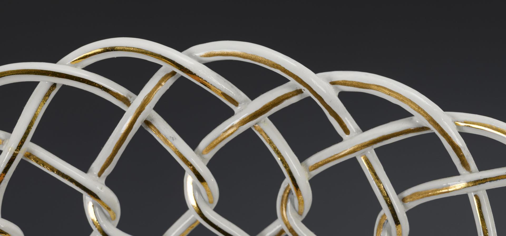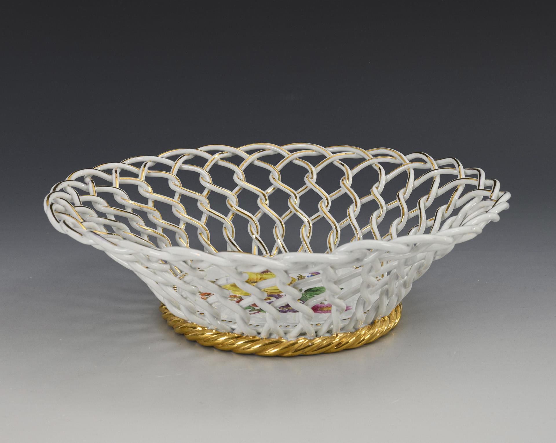 Polychrom bemalt, goldstaffiert. Ø 24 cm, H 7,5 cm. 360 g.
