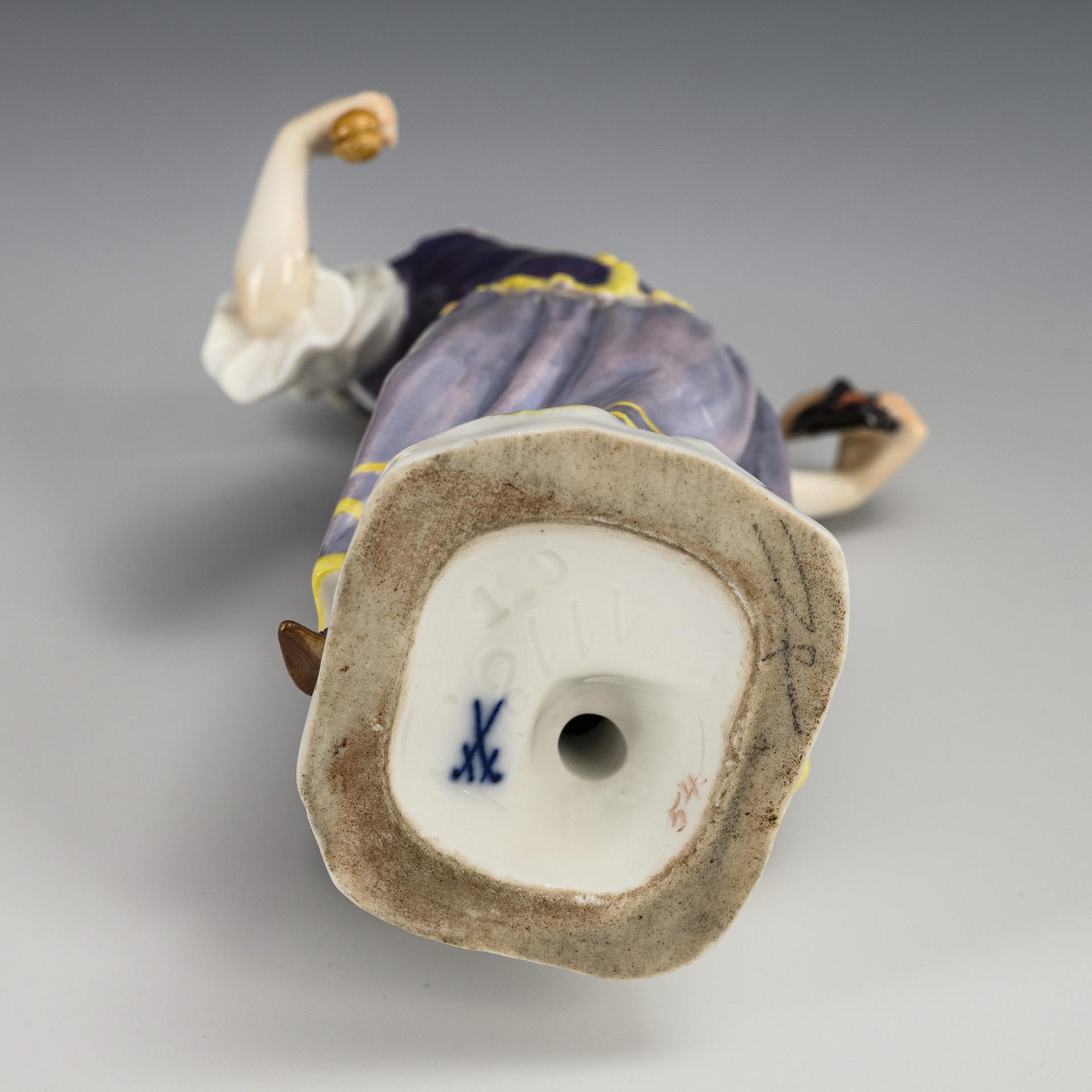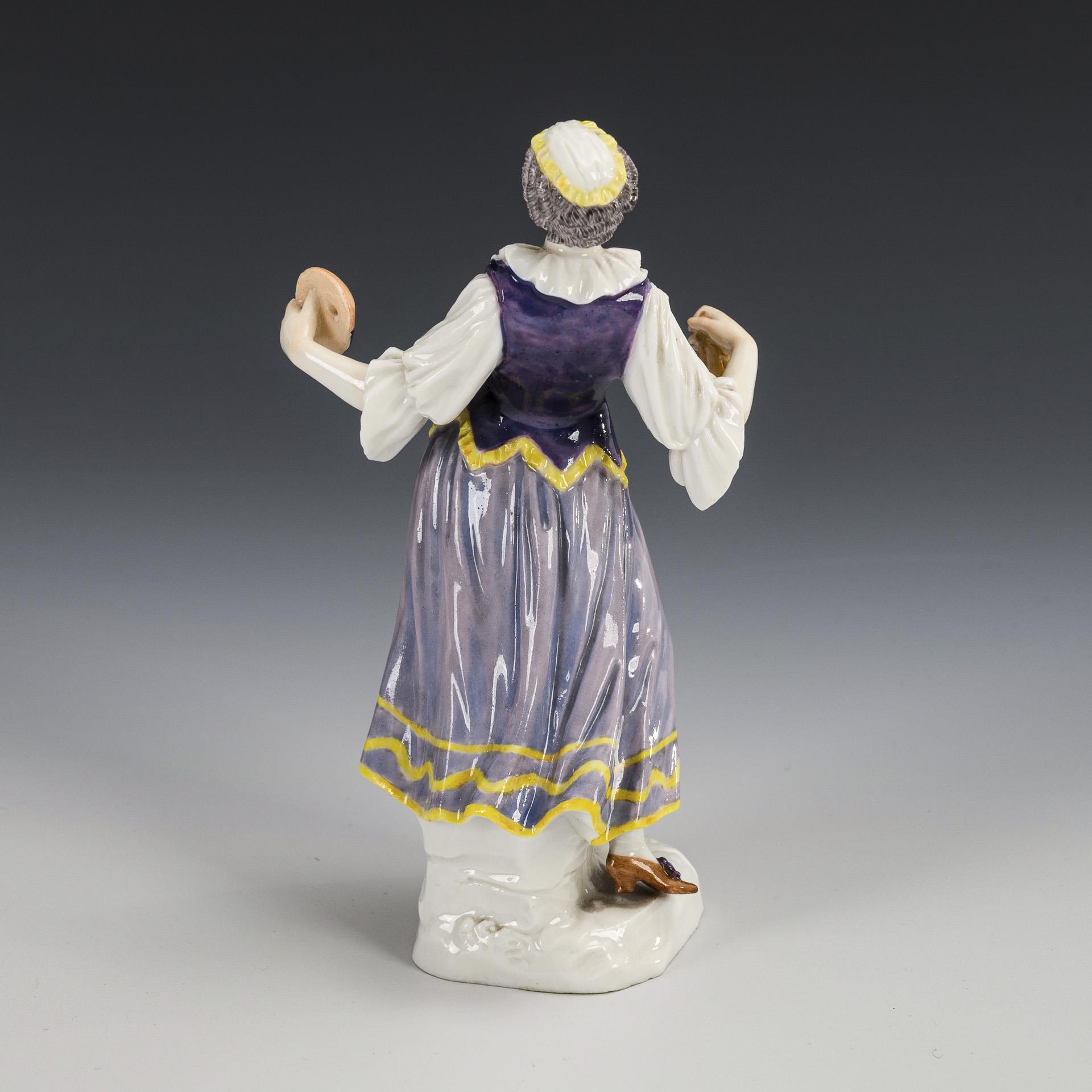 Dame mit Maske und Kastagnette. Minimaler Chip am Stand (Ø ca. 1 mm).