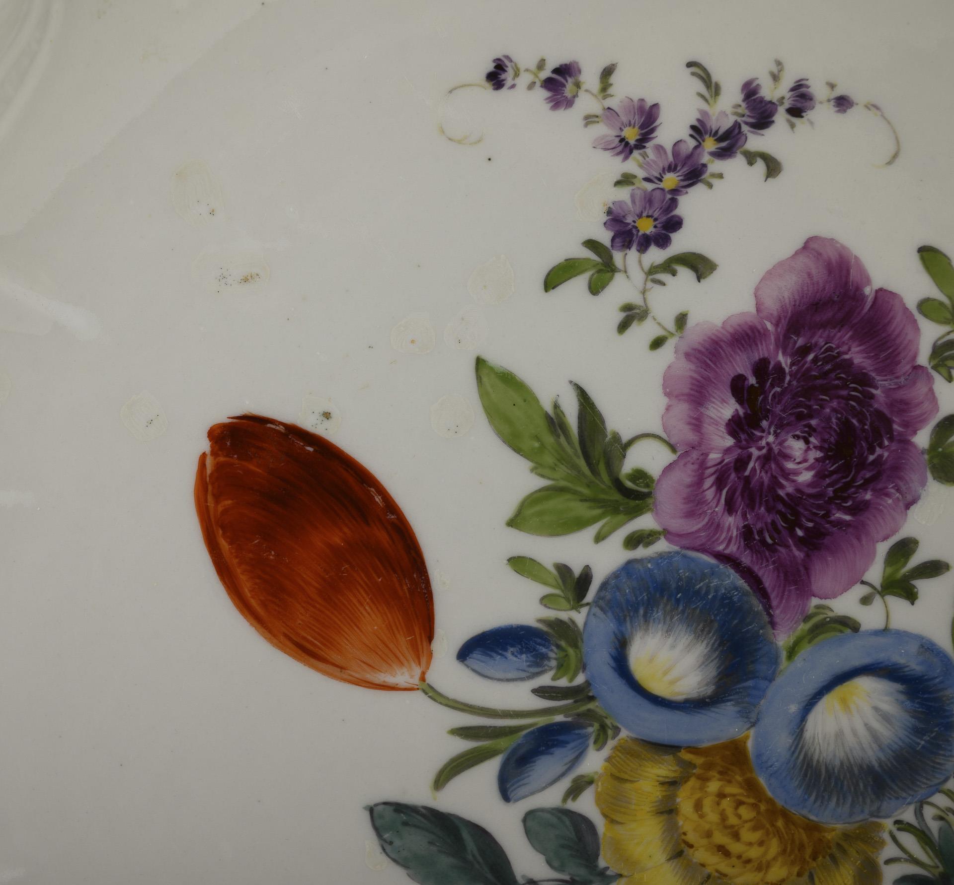 Barocker Gemüseteller mit Blumenmalerei. Meissen.