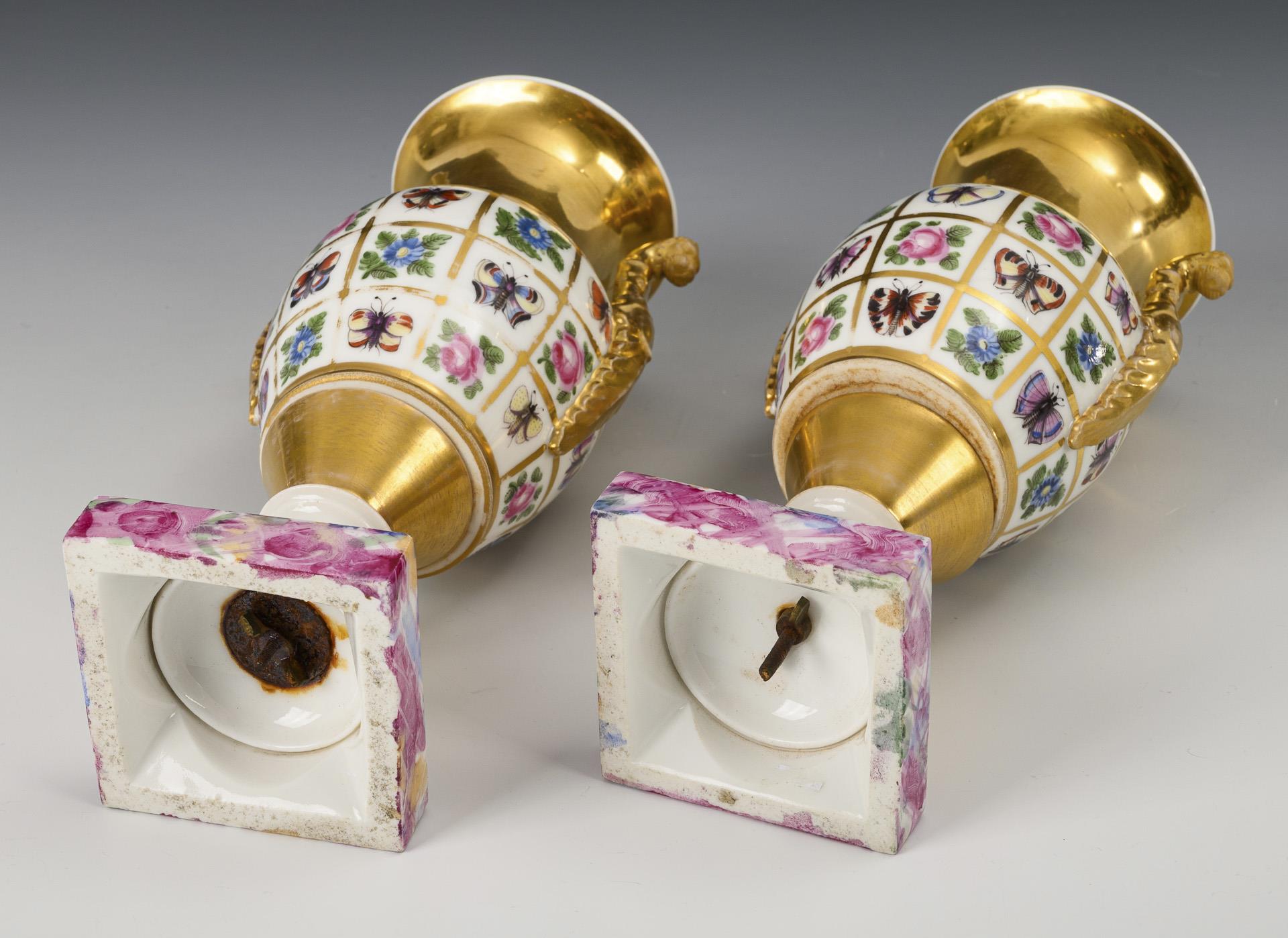 Paar Amphorenvasen mit Blumen- und Schmetterlingsmalerei.