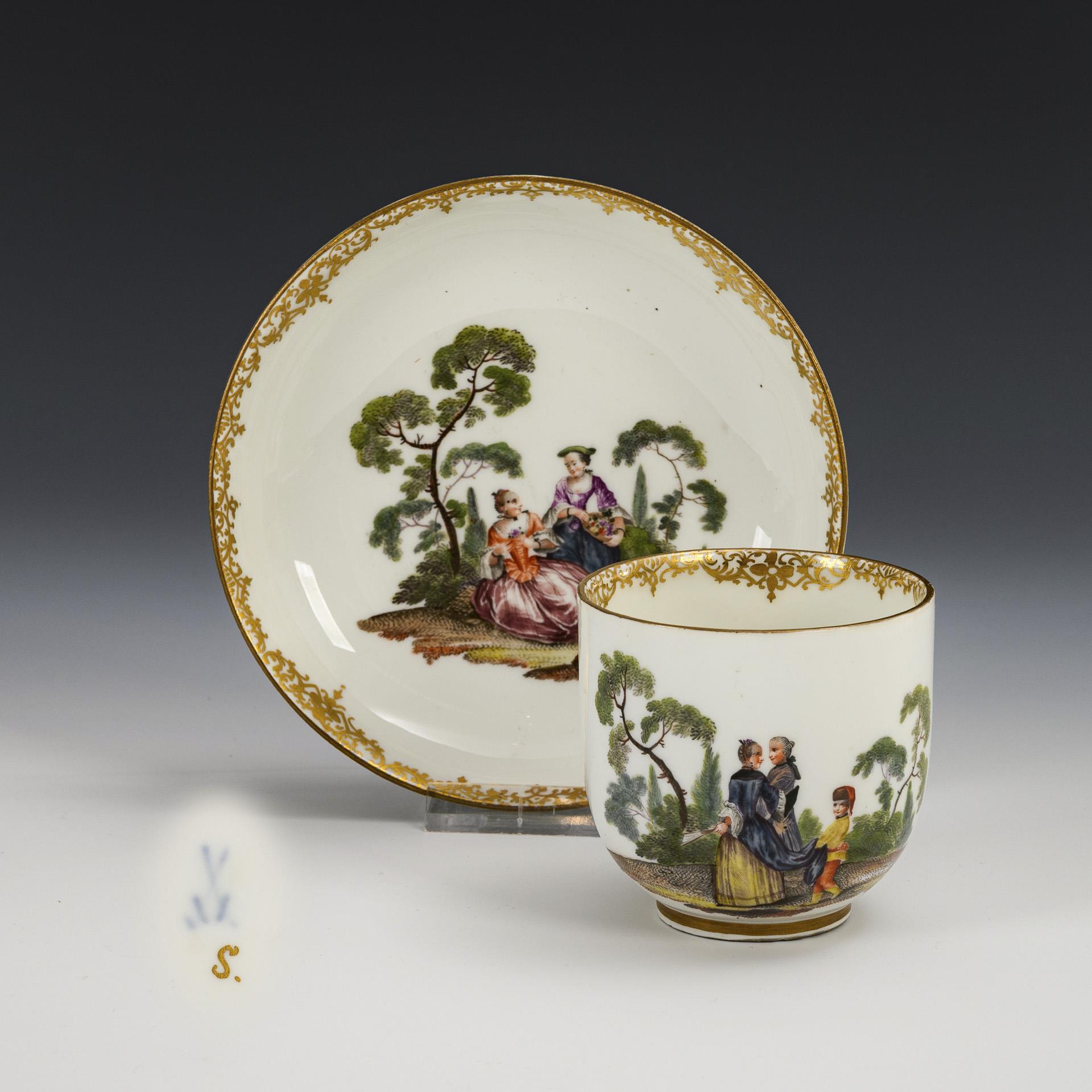 Barocke Tasse mit Watteau-Malerei. Meissen.