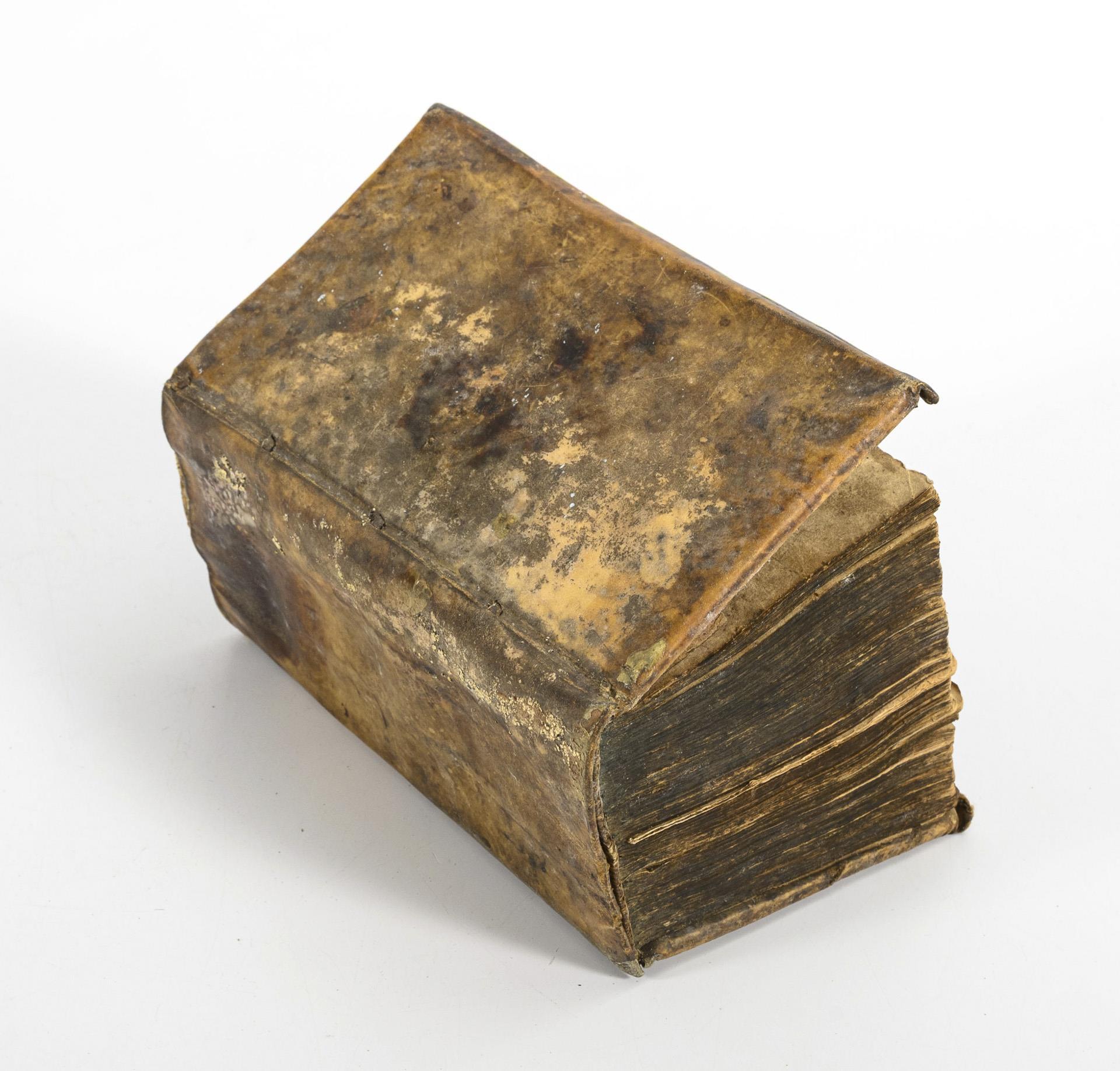 "Göttlicher Glücks-wechsel, Oder Geistliche Betrachtungen, von der Gottlosen Wehe und Unglückseeligkeit ...", Ulm 1675, (26), 692 Seiten (es fehlen wohl die letzten 12 Seiten). Im Pergamenteinband. Starke Alters- und Gebrauchsspuren.