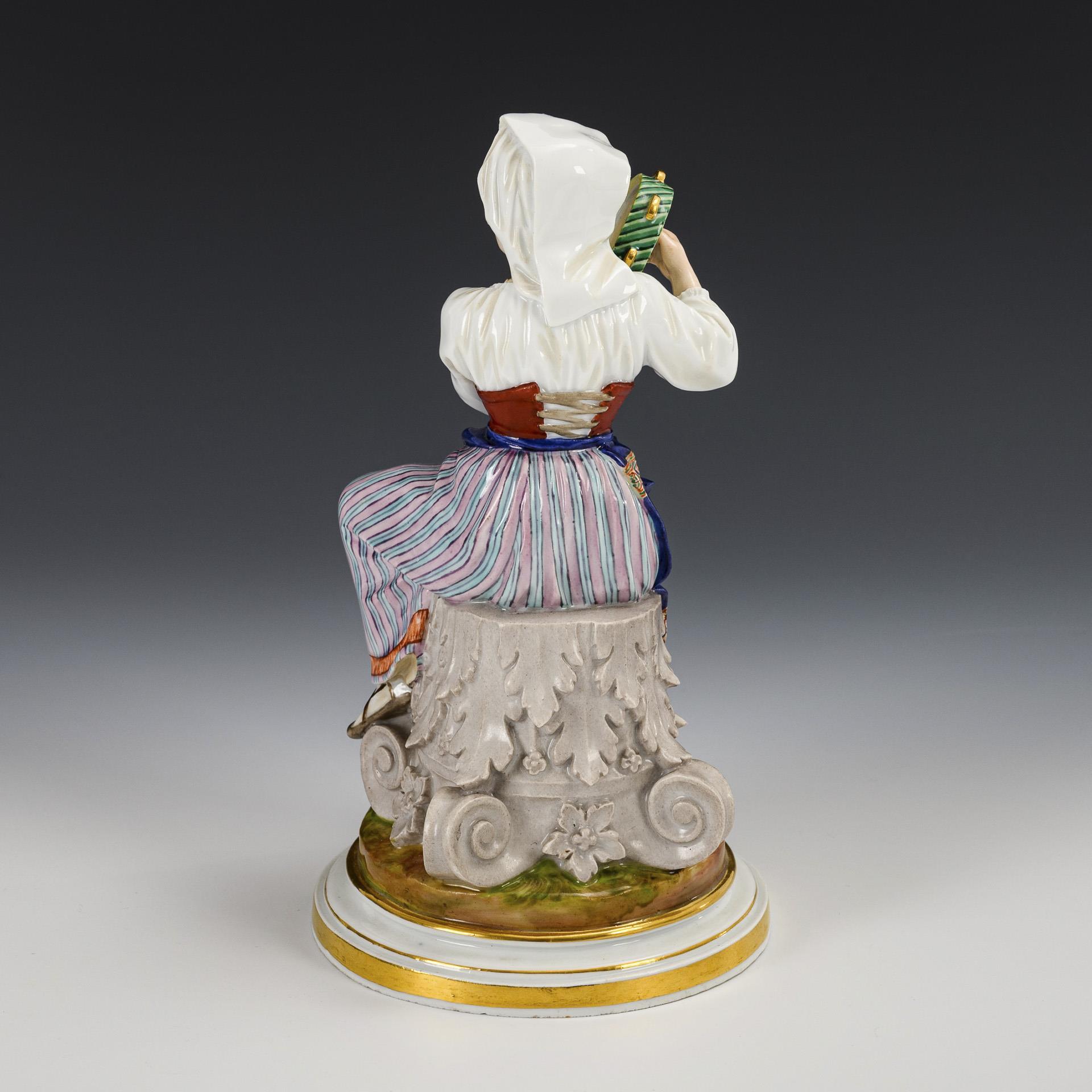 Auf einem Kapitell sitzende, ein Tambourin spielende Italienerin.
