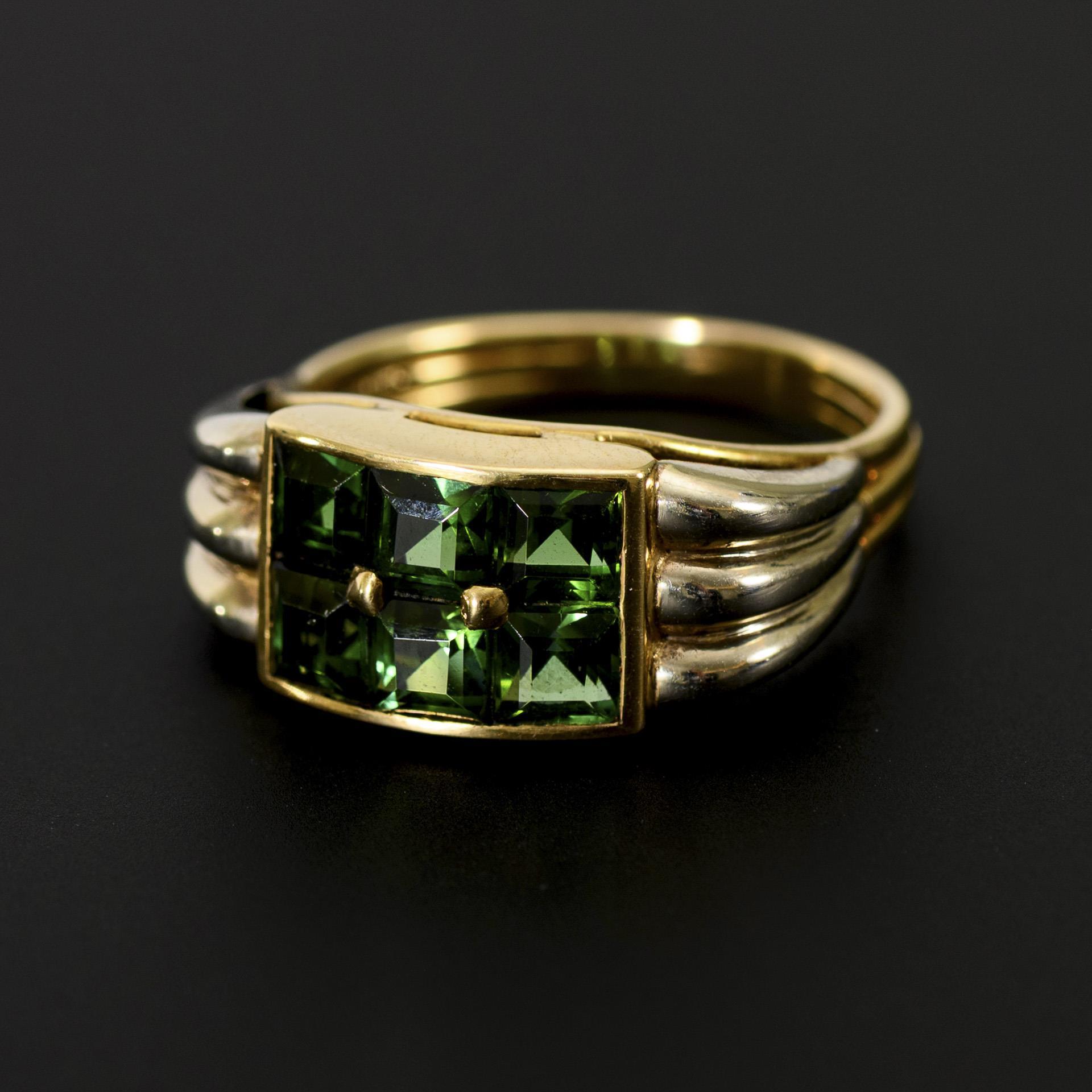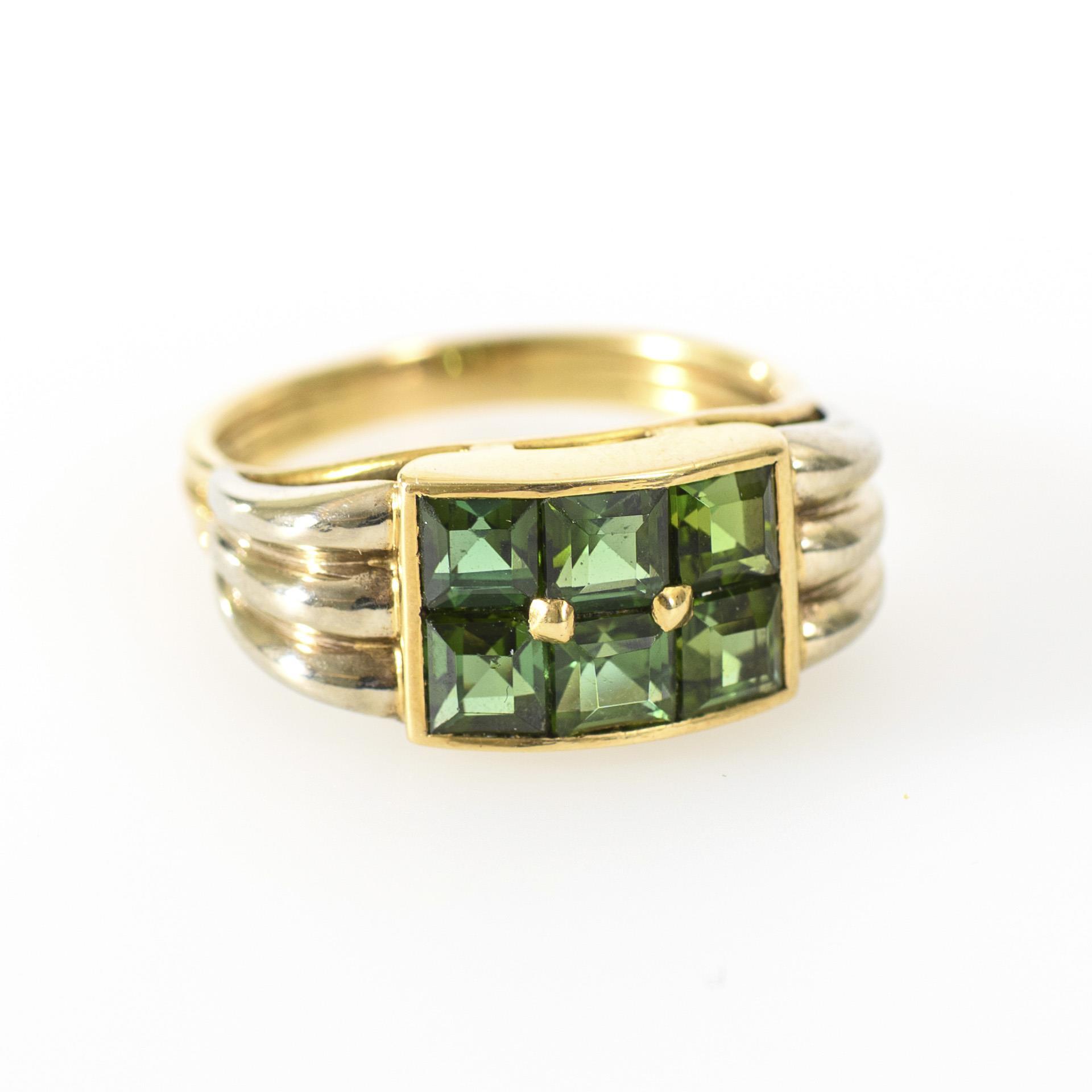 Eleganter Ring mit einem Besatz aus 6 Farbstein-Carrés, wohl Turmaline.