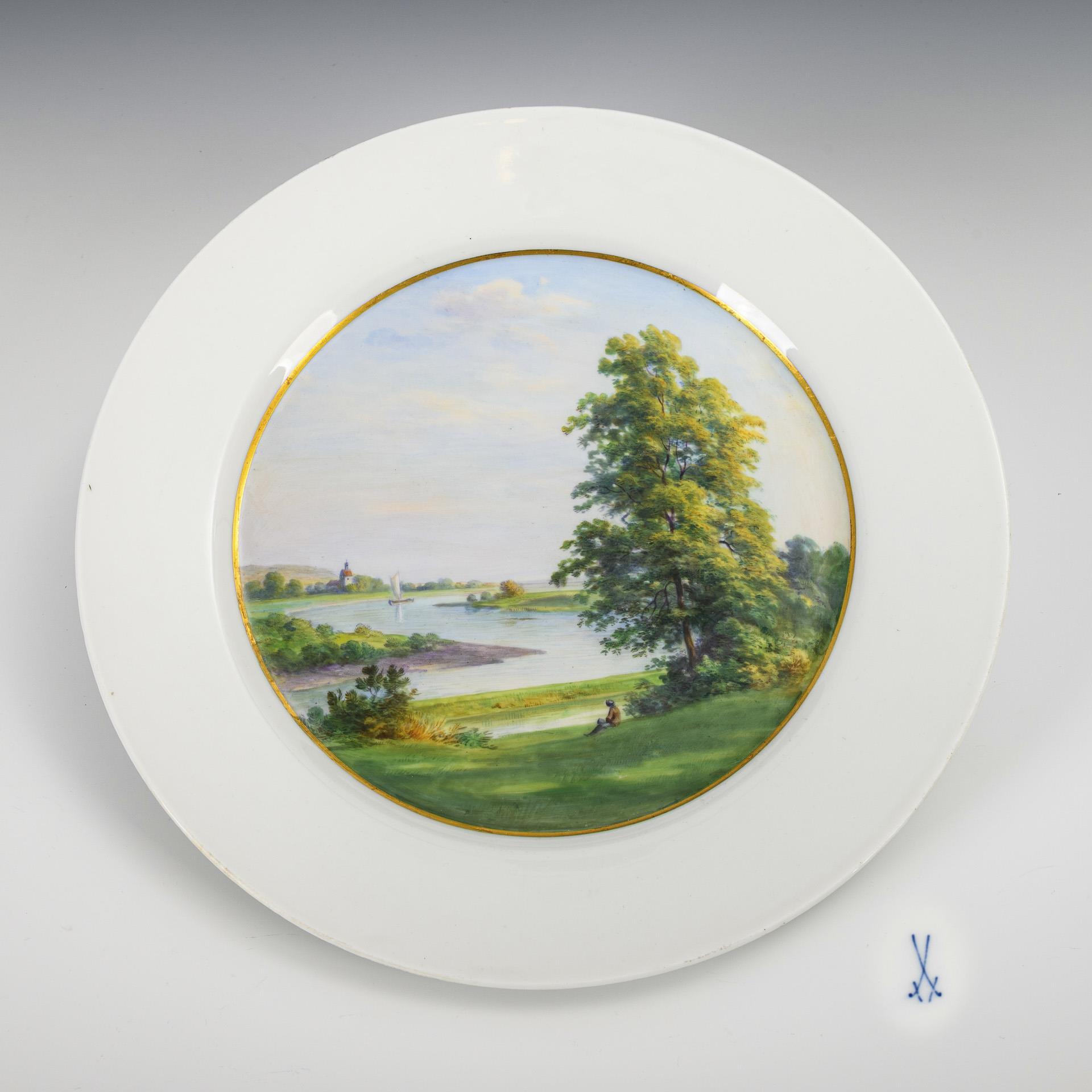 Jugendstil-Teller mit Landschaftsmalerei. Meissen.