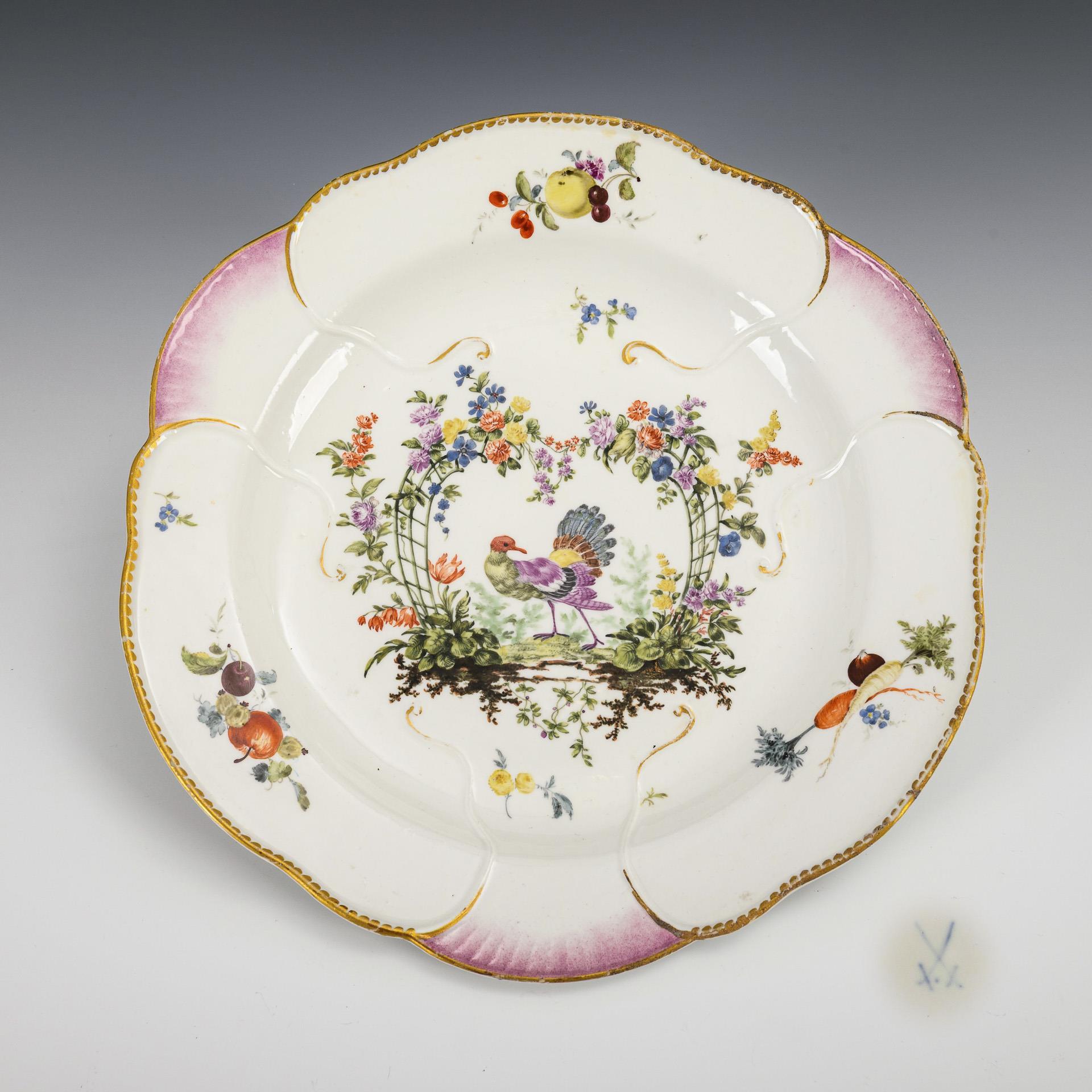 Barocker Teller mit Geflügelmalerei. Meissen.