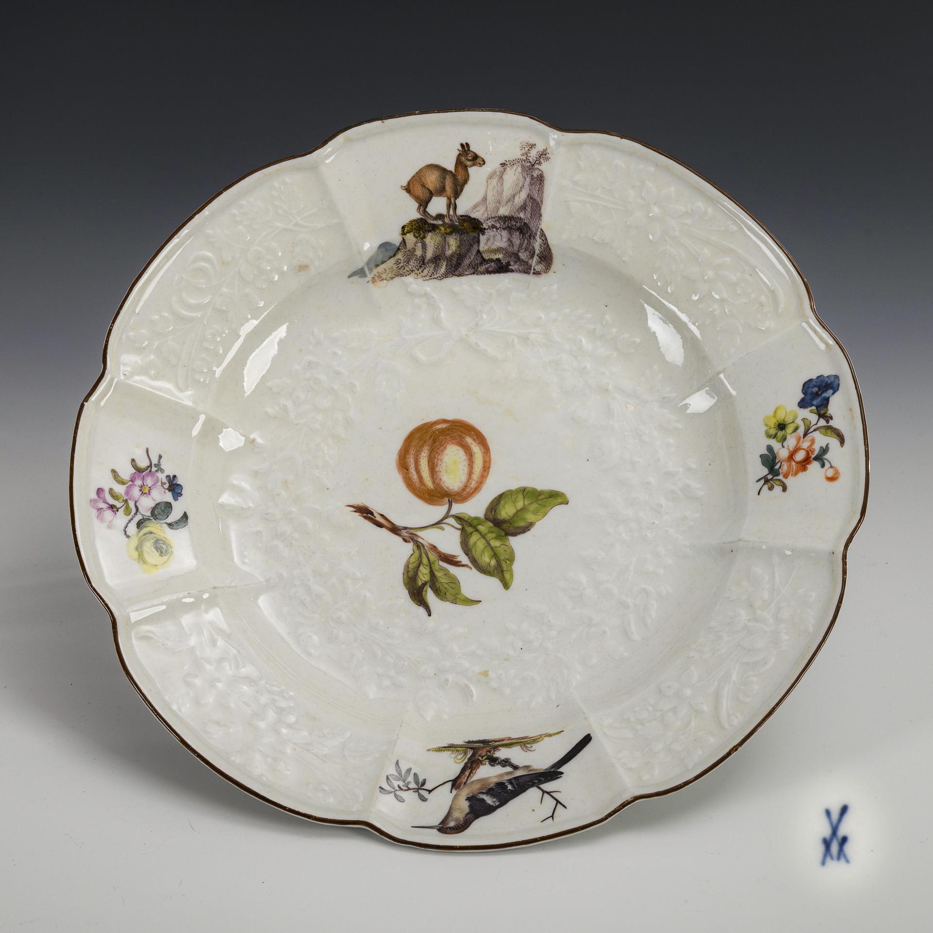 Barocker Teller mit Frucht- und Tiermalerei. Meissen.