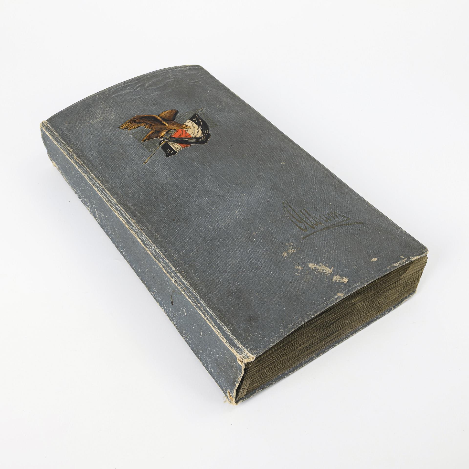 Blauer Leineneinband, auf dem Deckel Farbdruck: Adler an Nationalflagge des Deutschen Reiches. Karten meist Offsetdrucke, auch Farblithografien, teils Fotodrucke, teils koloriert. 38 x 33 x 8 cm. 3,5 kg.
