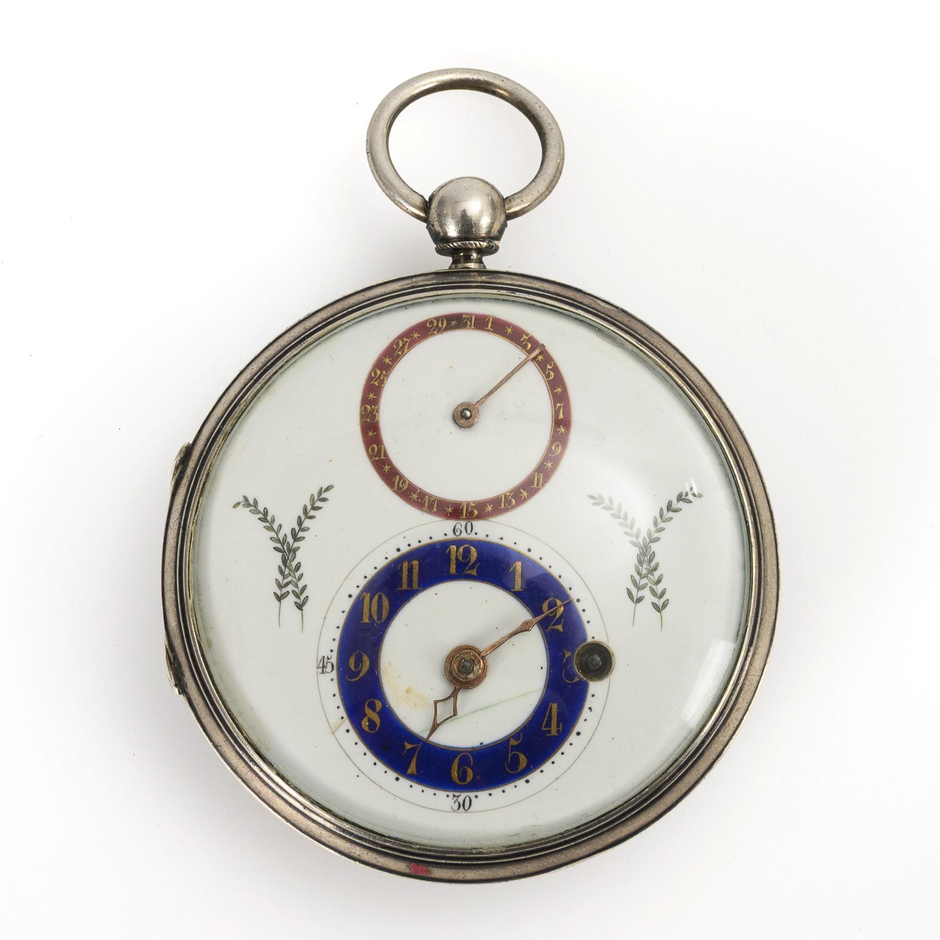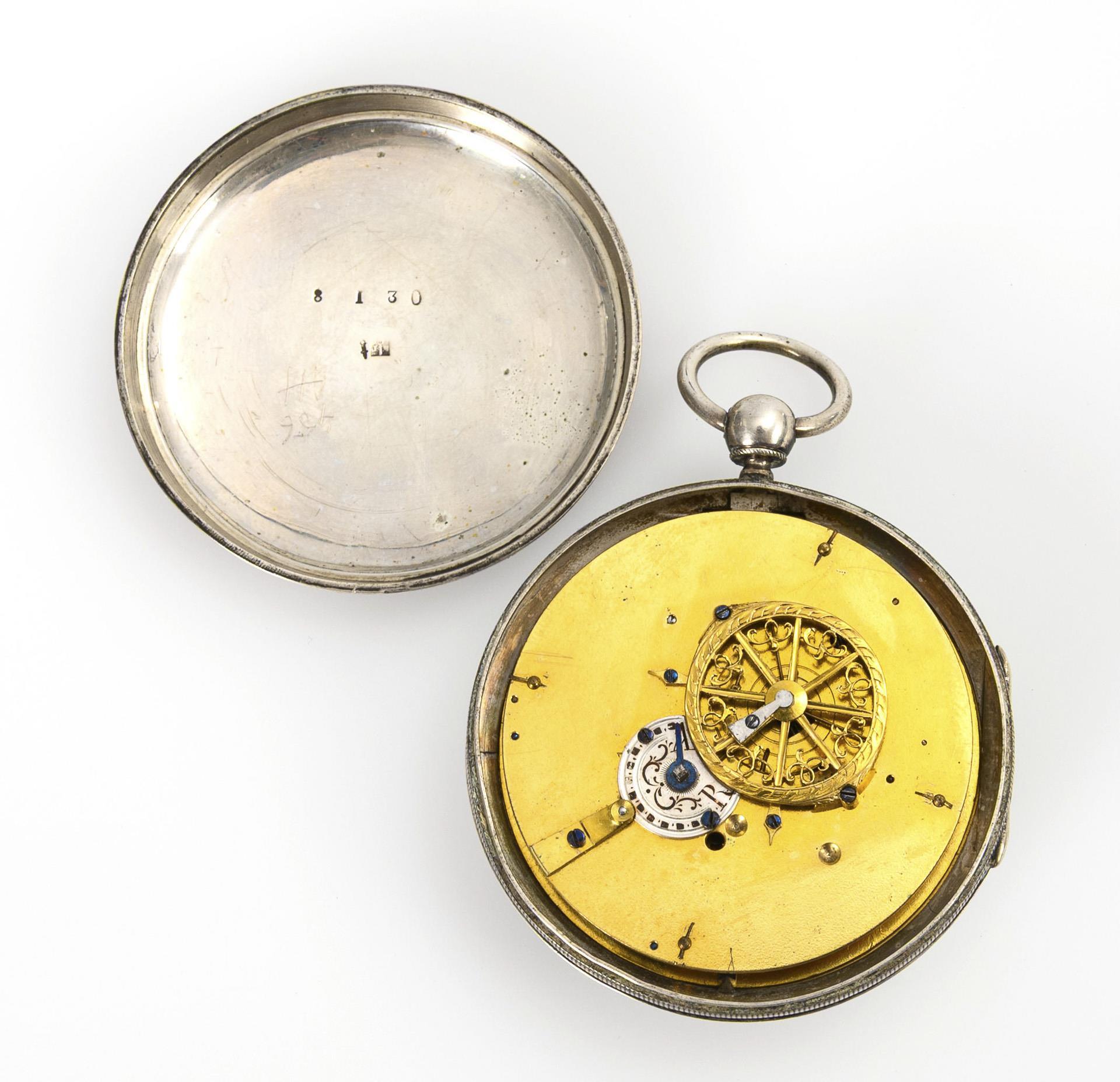 Silberne Biedermeier-Spindeltaschenuhr mit Datum.