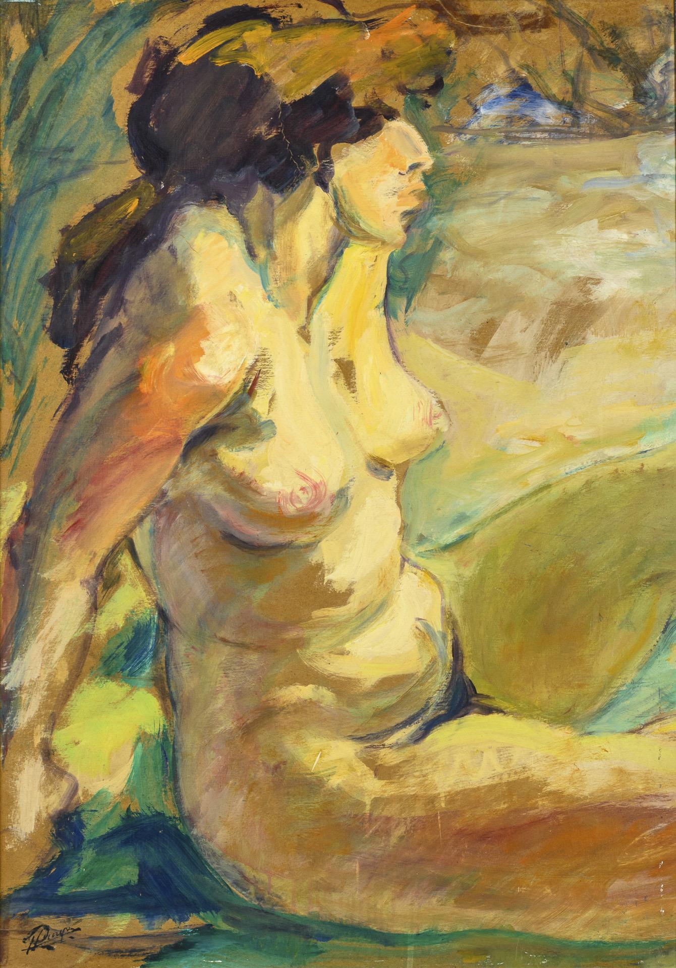 Öl/Malkarton. Links unten undeutlich signiert.