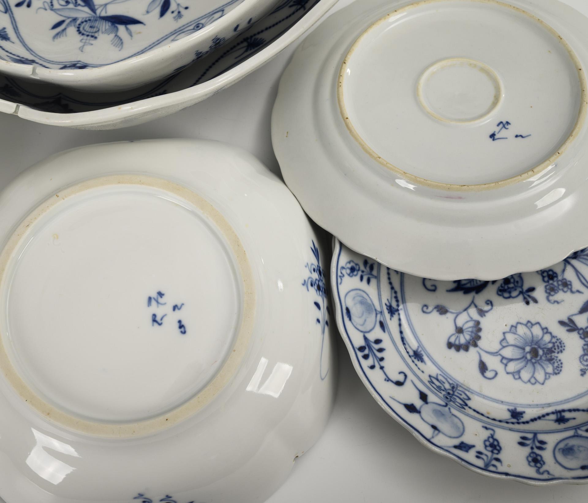 19 Teile eines Zwiebelmuster-Speiseservice. Rauenstein.