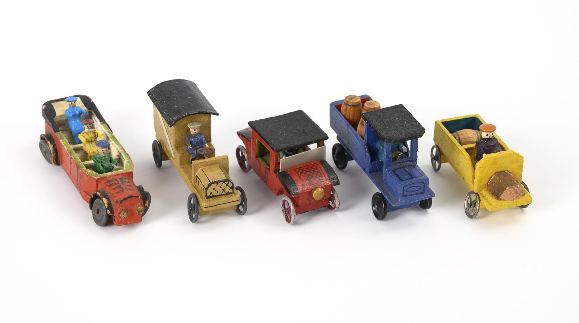 Konvolut 5 Miniatur-Fahrzeuge. Erzgebirge.