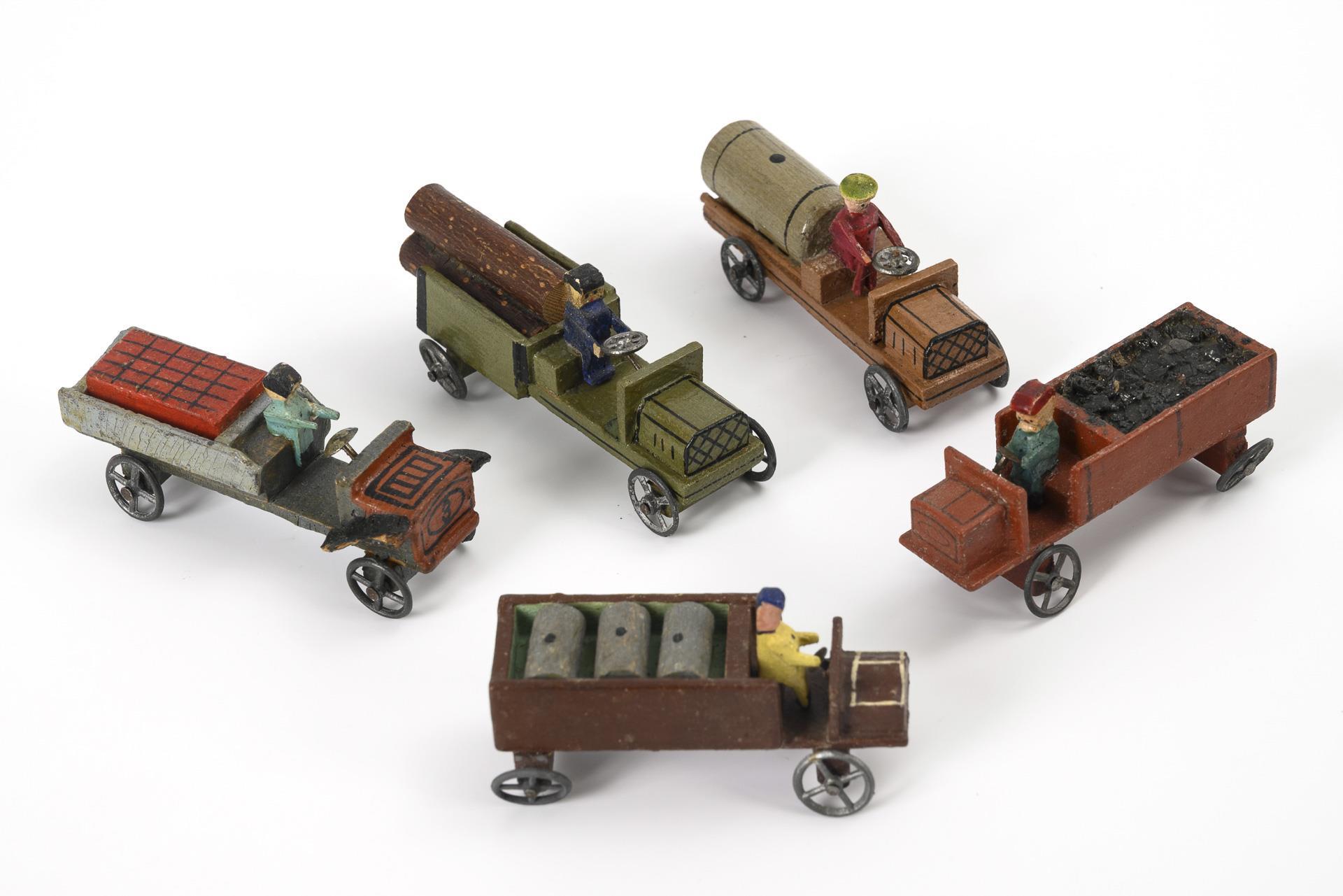 Konvolut 5 Miniatur-Fahrzeuge. Erzgebirge.