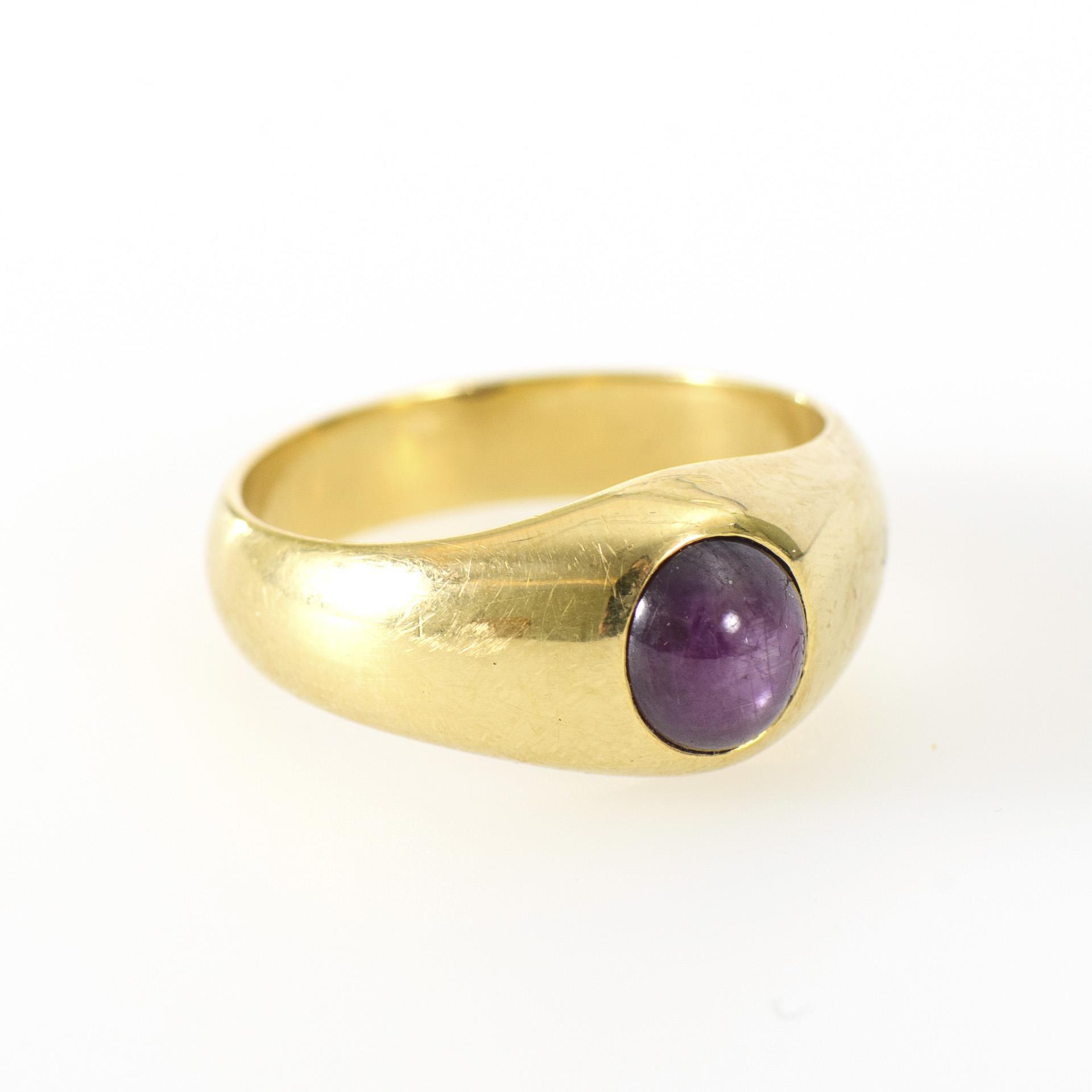 Erhabener Cabochon, wohl Stern-Saphir, gefasst in einen wertigen Gelbgold-Ring.