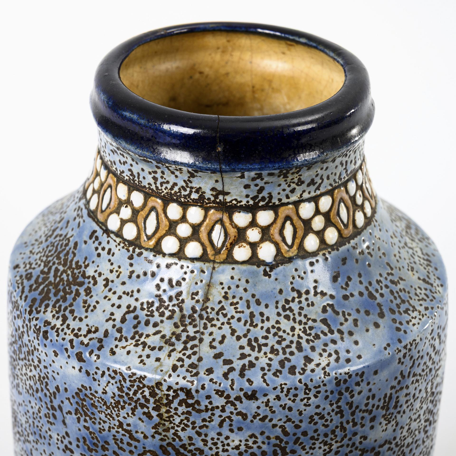 3 blaue Balustervasen und 1 cremefarbener Lampenfuß, verschiedene farbige Floraldekore. 1 Vase mit verschlossenem Bodenloch.