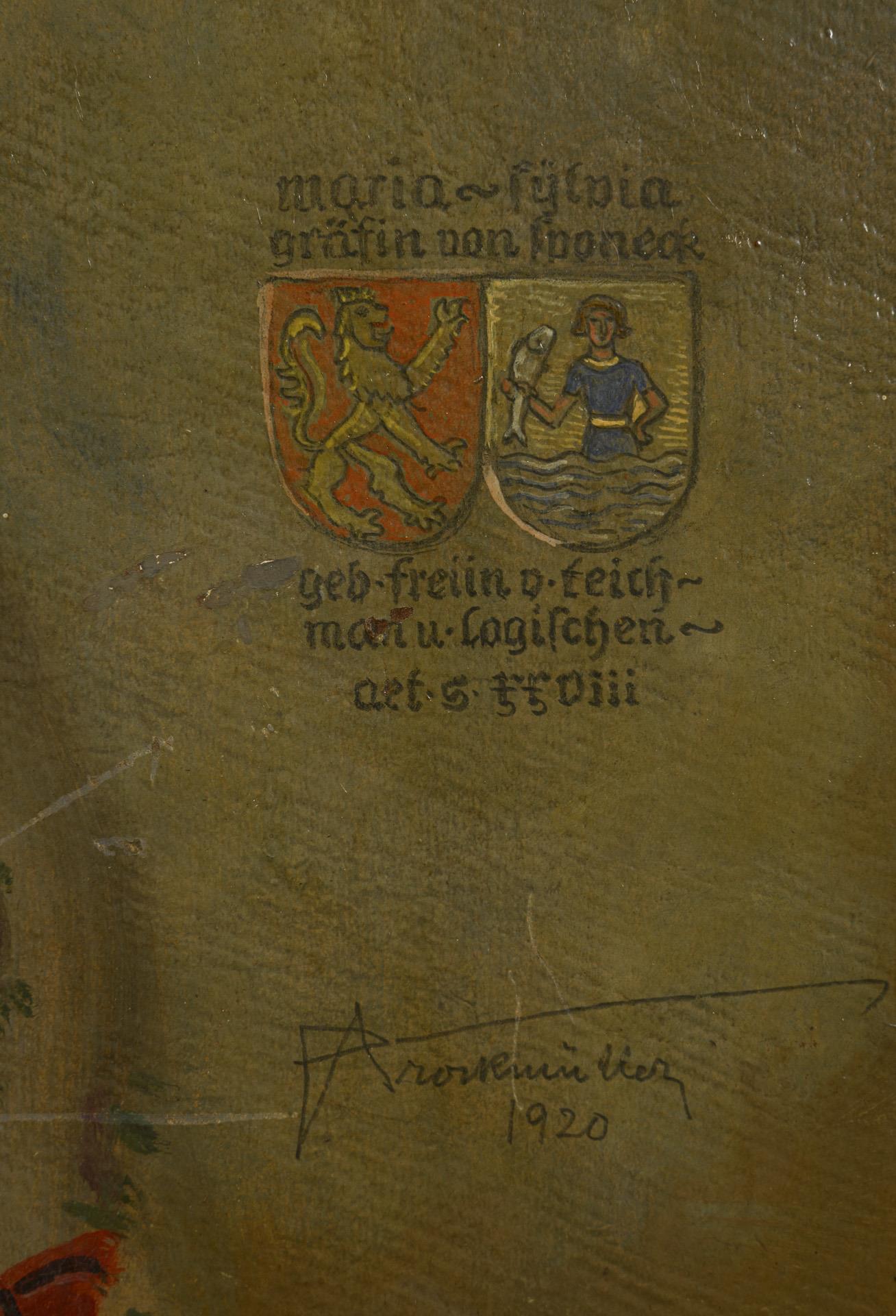 Öl/Malkarton. Rechts unten undeutlich signiert/betitelt mit Wappen. 1920.