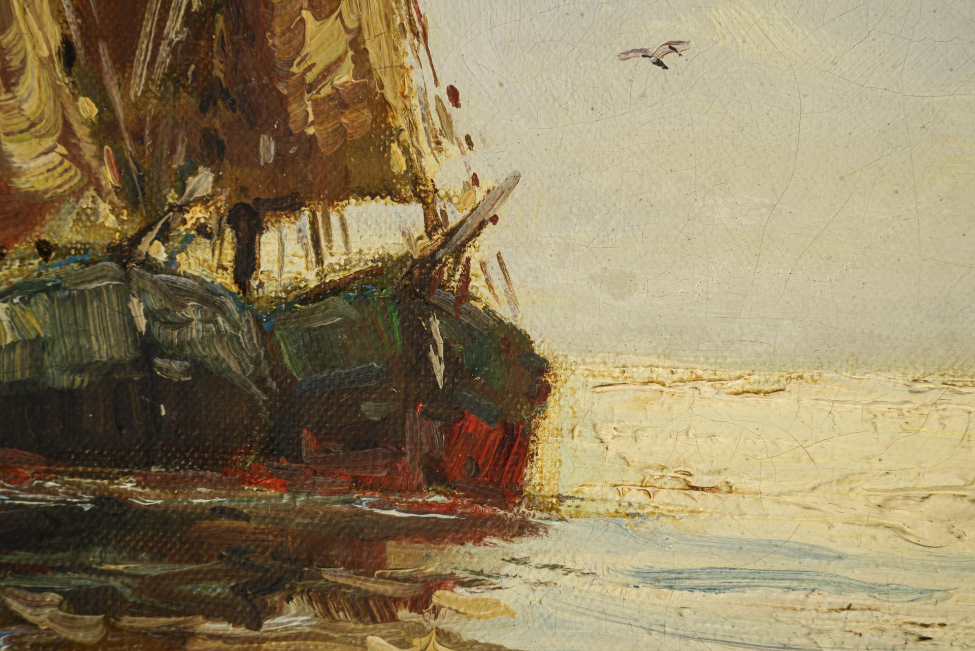 Meerblick mit Schiff am Ufer
