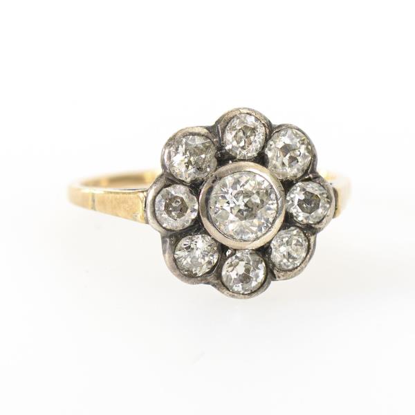 Sie befinden sich hier: Startseite Kategorien Schmuck Daisy-Ring mit silbergefassten Altschliff-Brillanten zwischen zarter Schiene