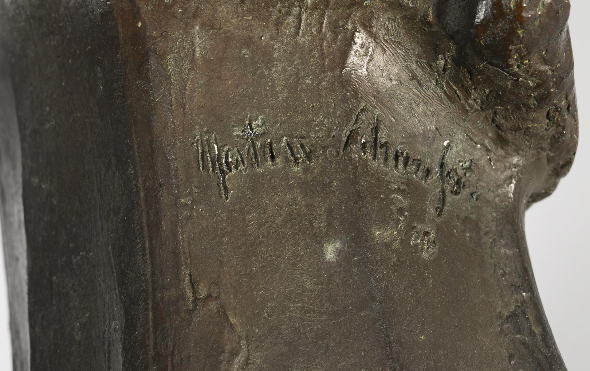 Bronze patiniert. Bezeichnet, im Sockel Etikett (einer Ausstellung?) mit Nr. "886" und handschriftlichen Vermerken. H 48 cm. 15,0 kg.