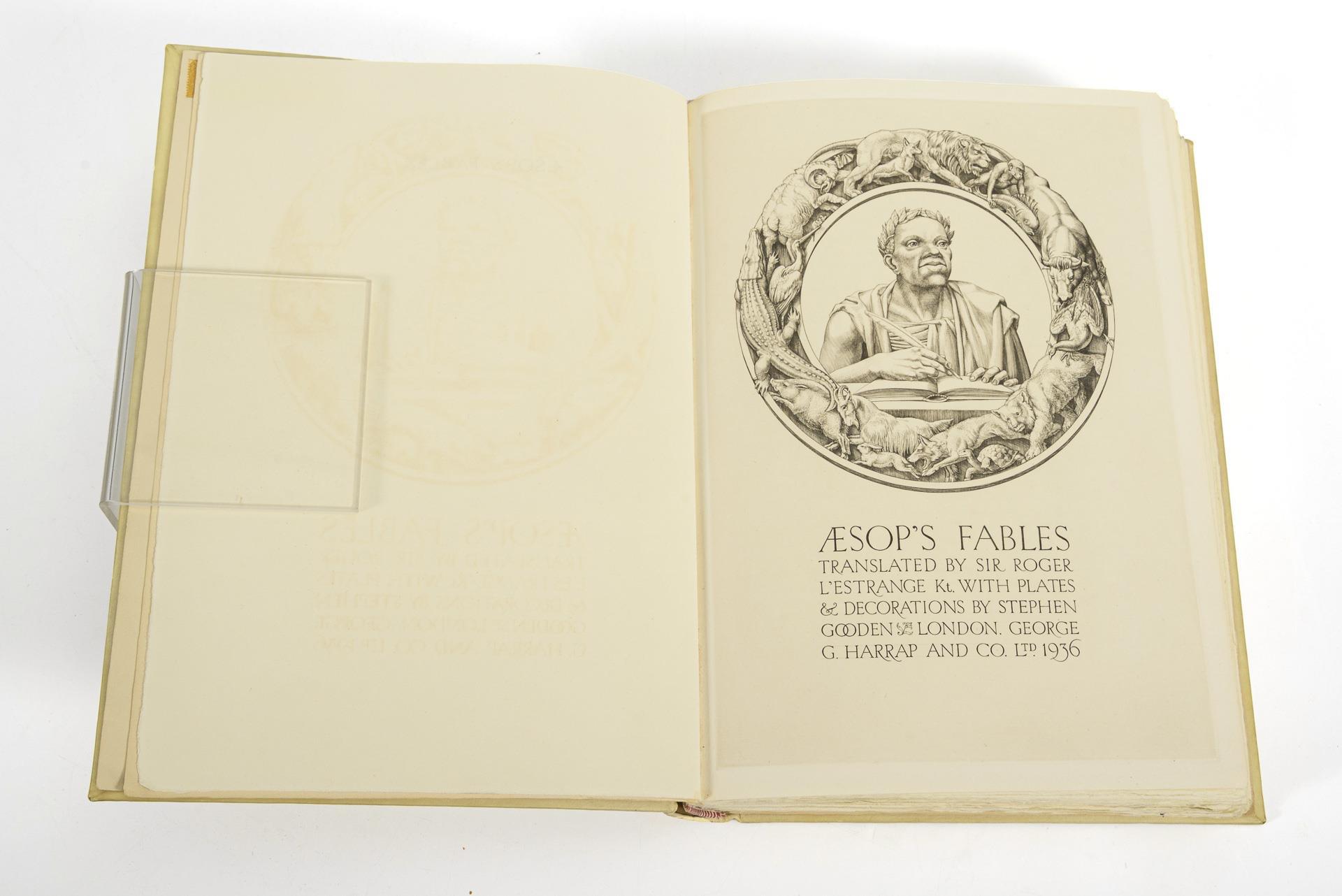 Translated by Sir Roger L'Estrange. Nummeriertes Exemplar 12 von 525, Originalsignatur des Künstlers. 314 Seiten auf Büttenpapier und mehrere ganzseitige Illustrationen im goldgeprägten Pergamenteinband, im Schuber. Im Vorsatz Spuren eines alten Klebezettels, Schuber mit Altersspuren.