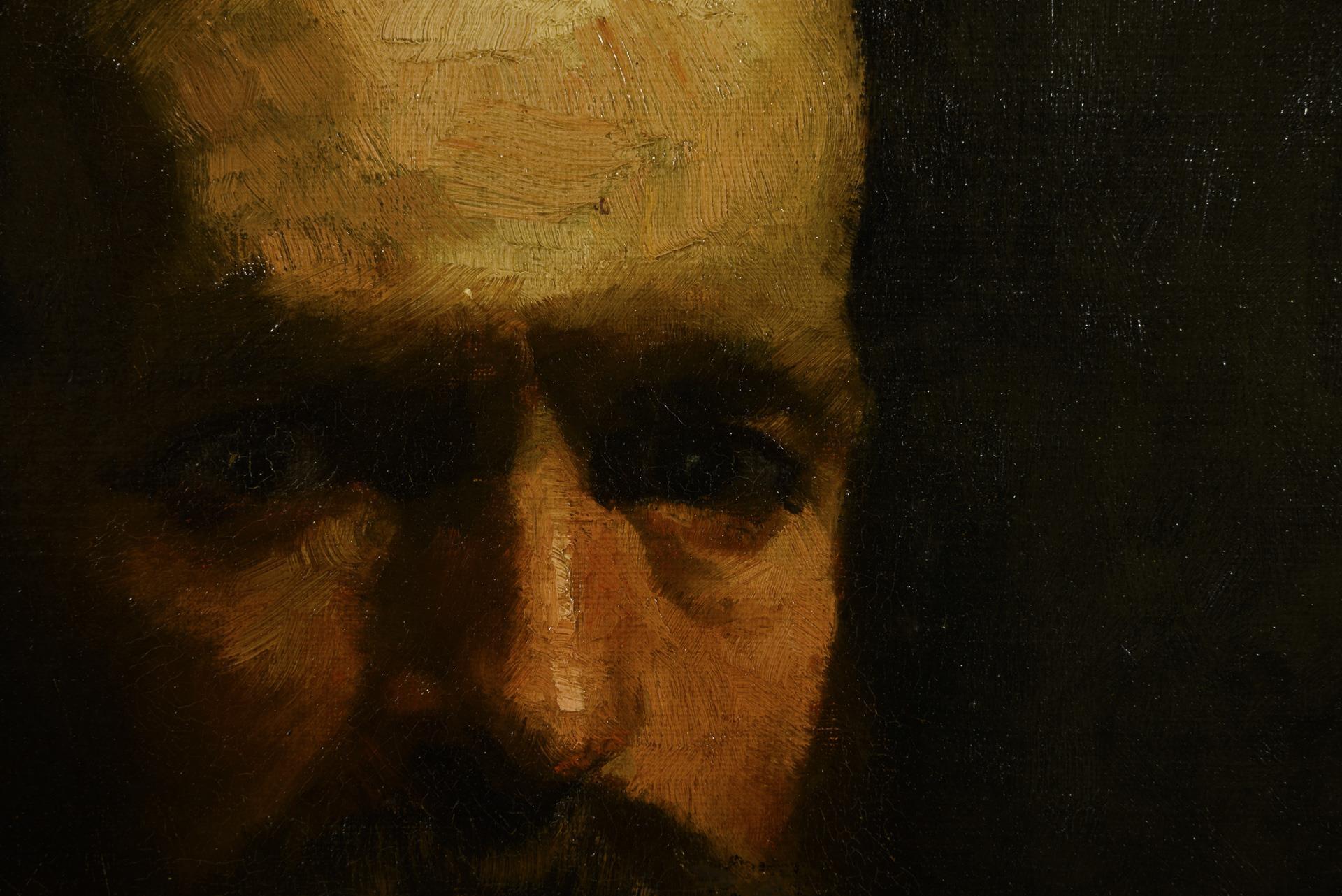 Porträt eines Mannes mit Vollbart vor neutralem Hintergrund. Altersspuren.
