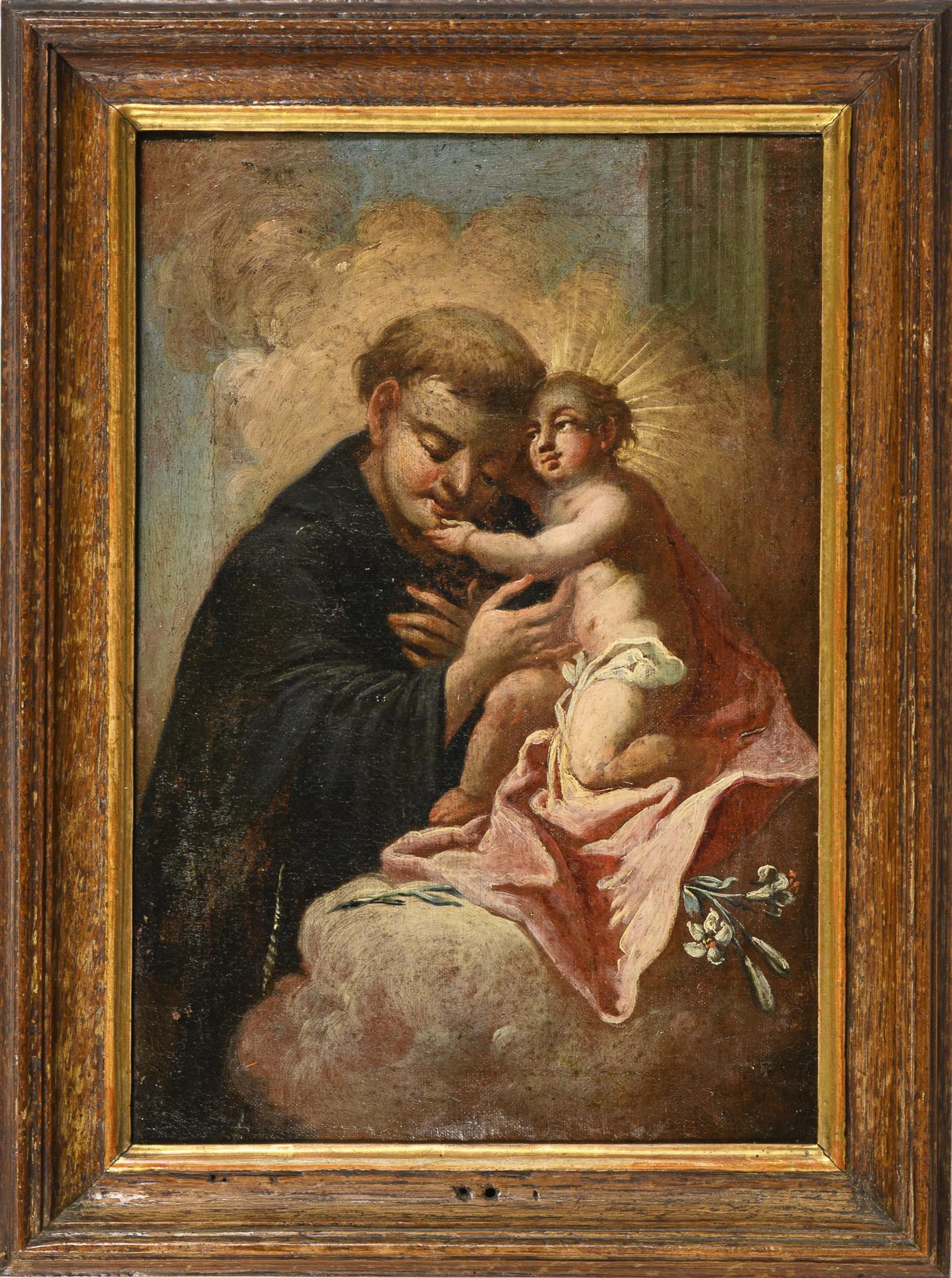 Der Heilige mit den Jesuskind auf einer heranschwebenden Wolke. Ein sehr kleiner Defekt.