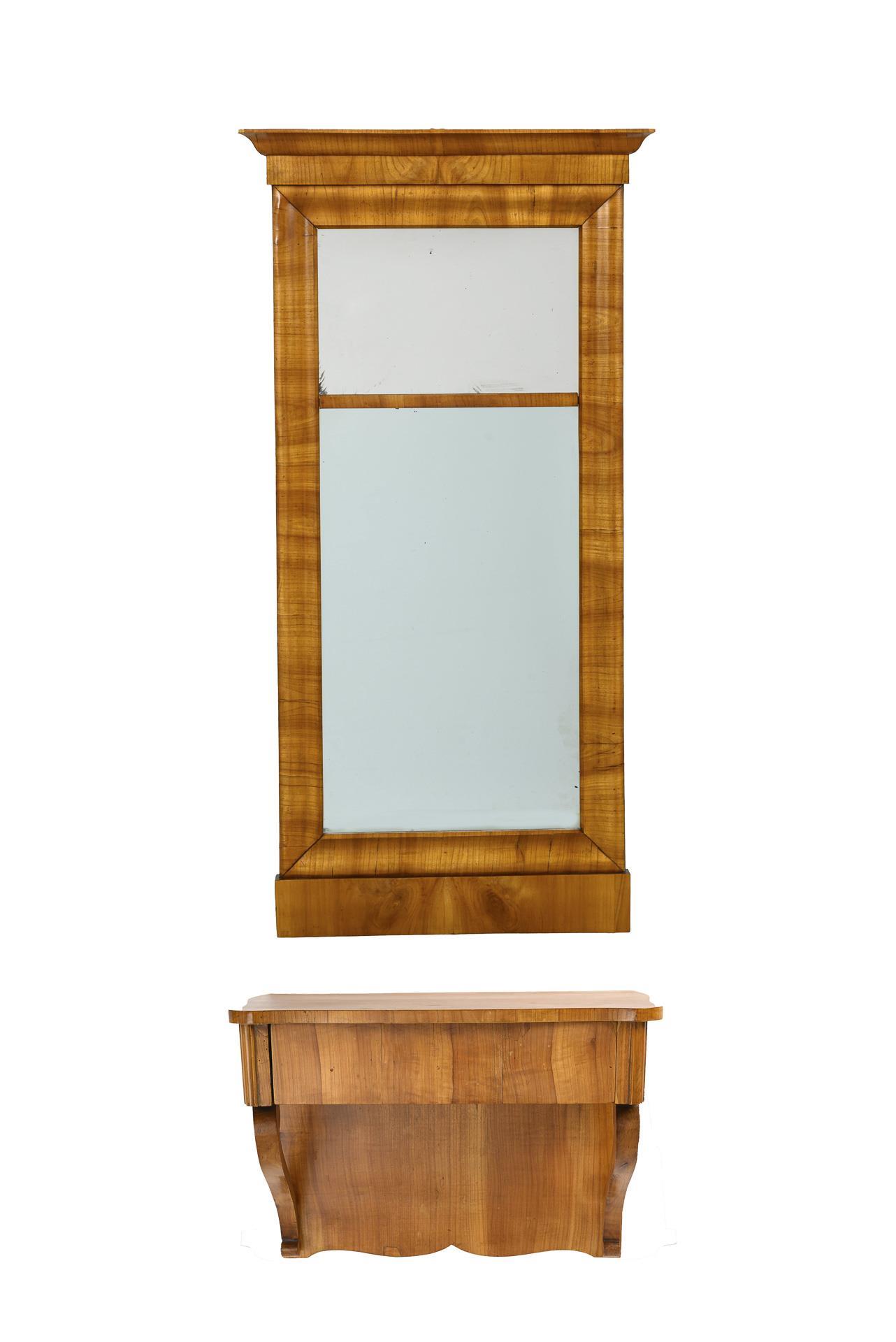 Kirschbaum, furniert. Spiegel 125 x 63,5 cm, Konsole 43,5 x 60,5 x 27,5 cm.