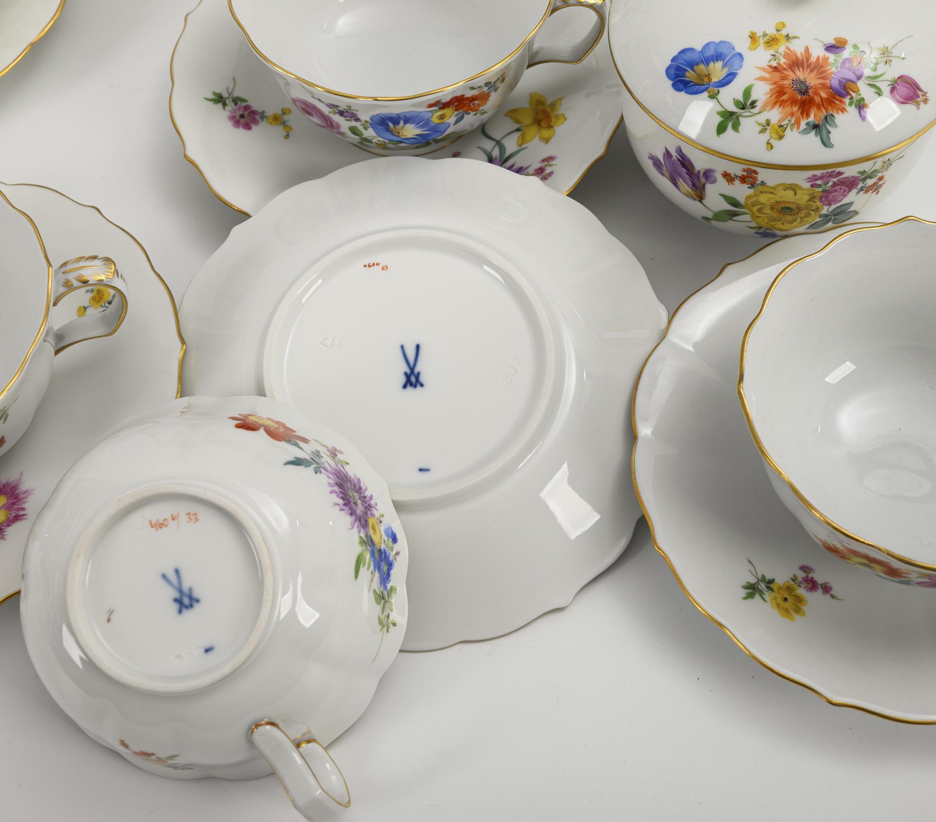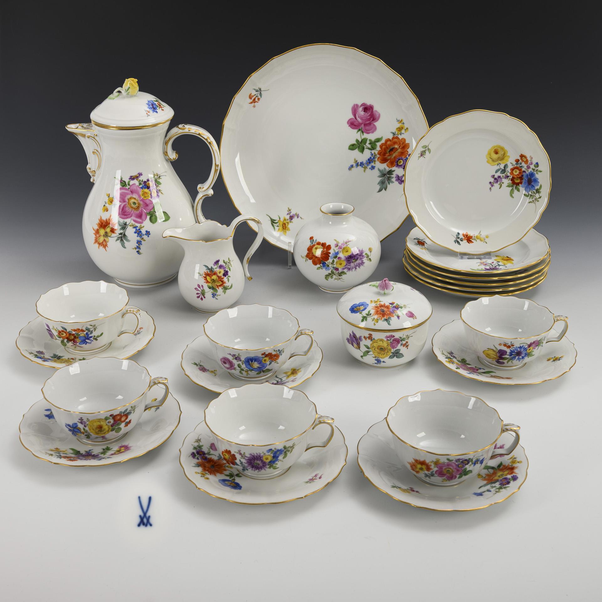 Kaffee-/Teeservice mit Blumenmalerei. Meissen.
