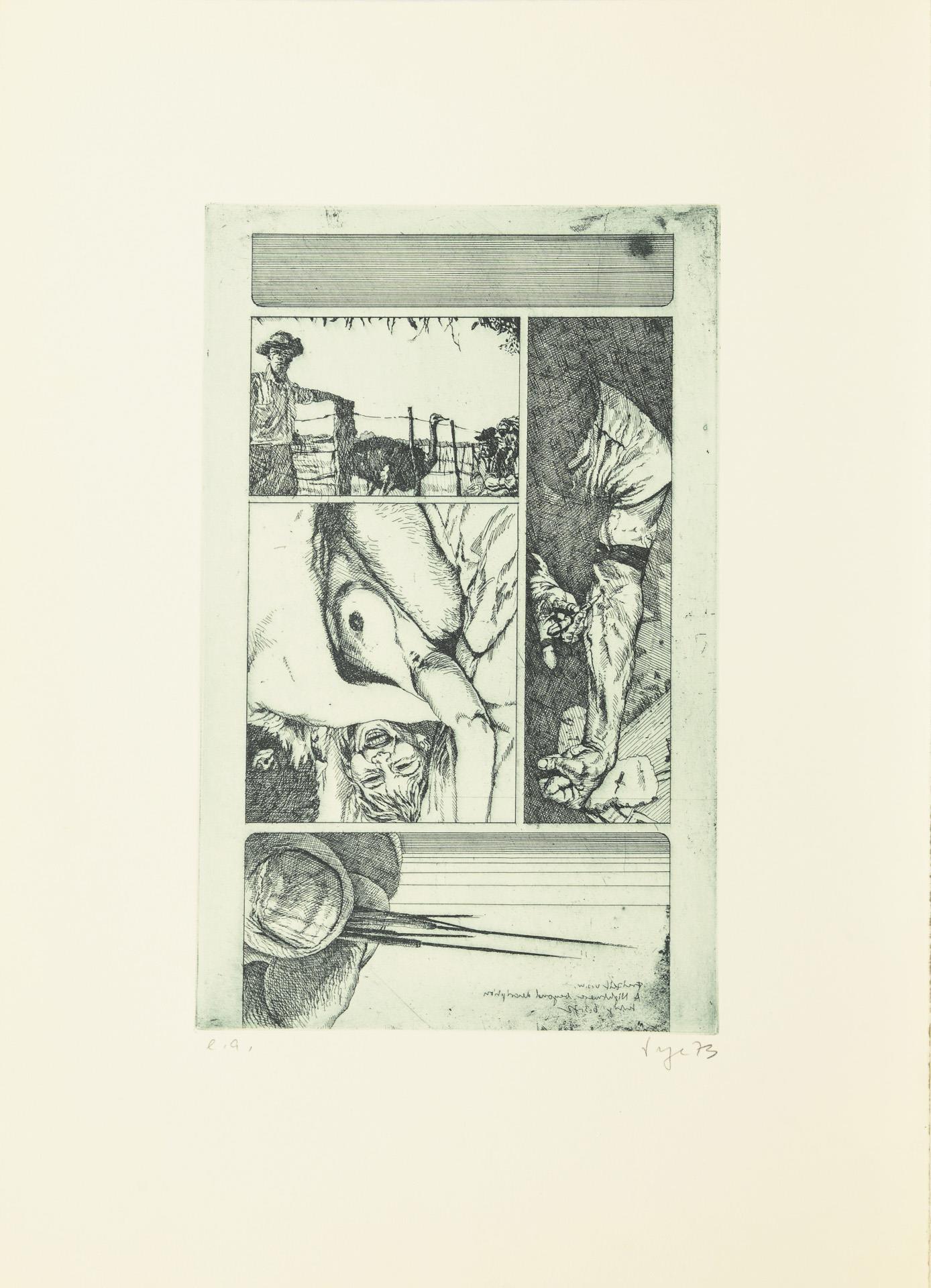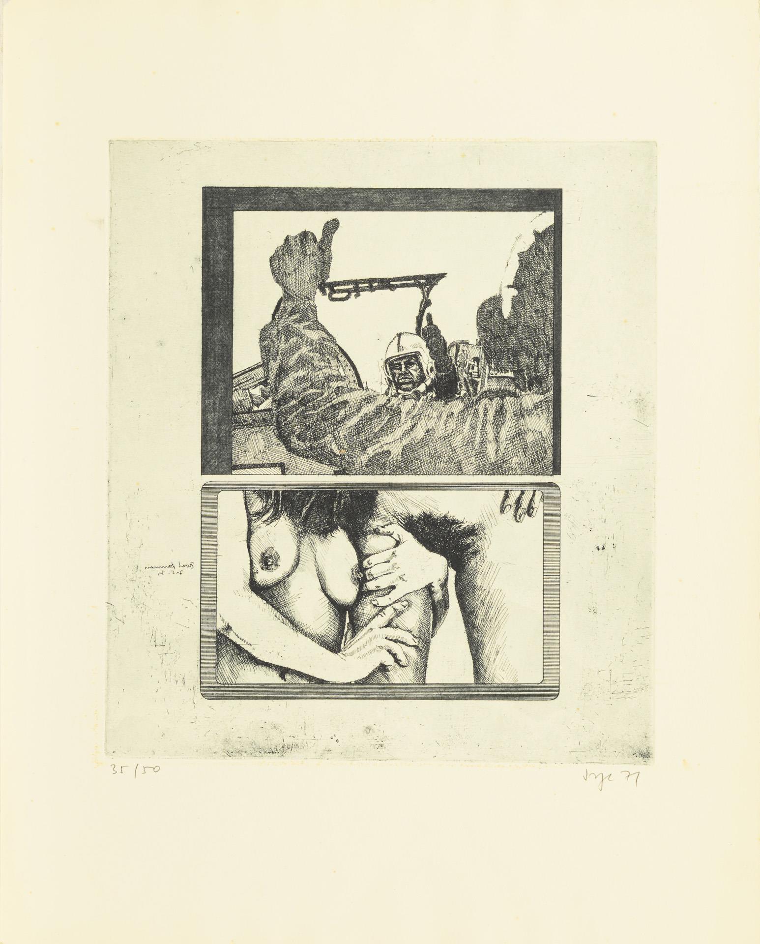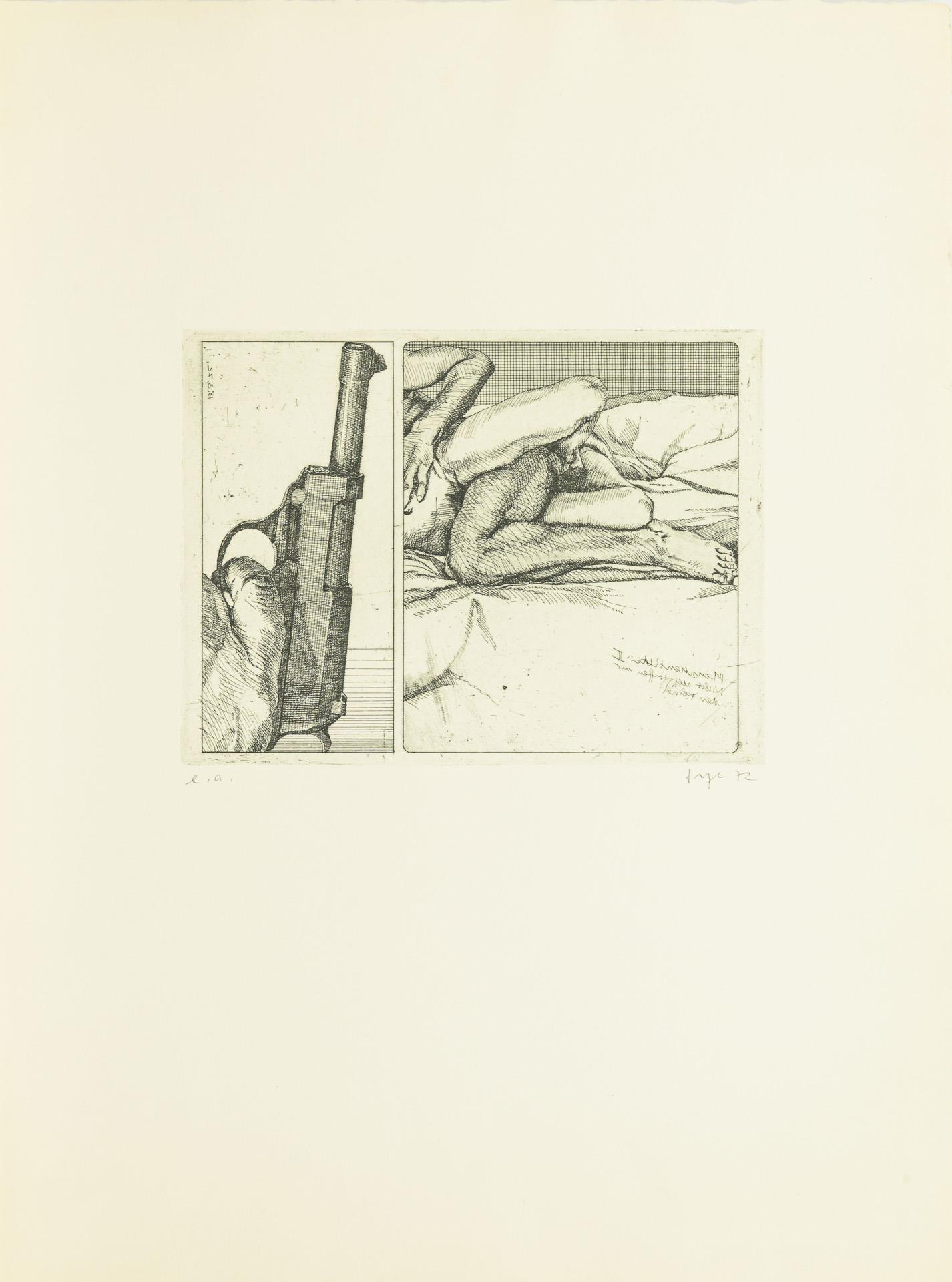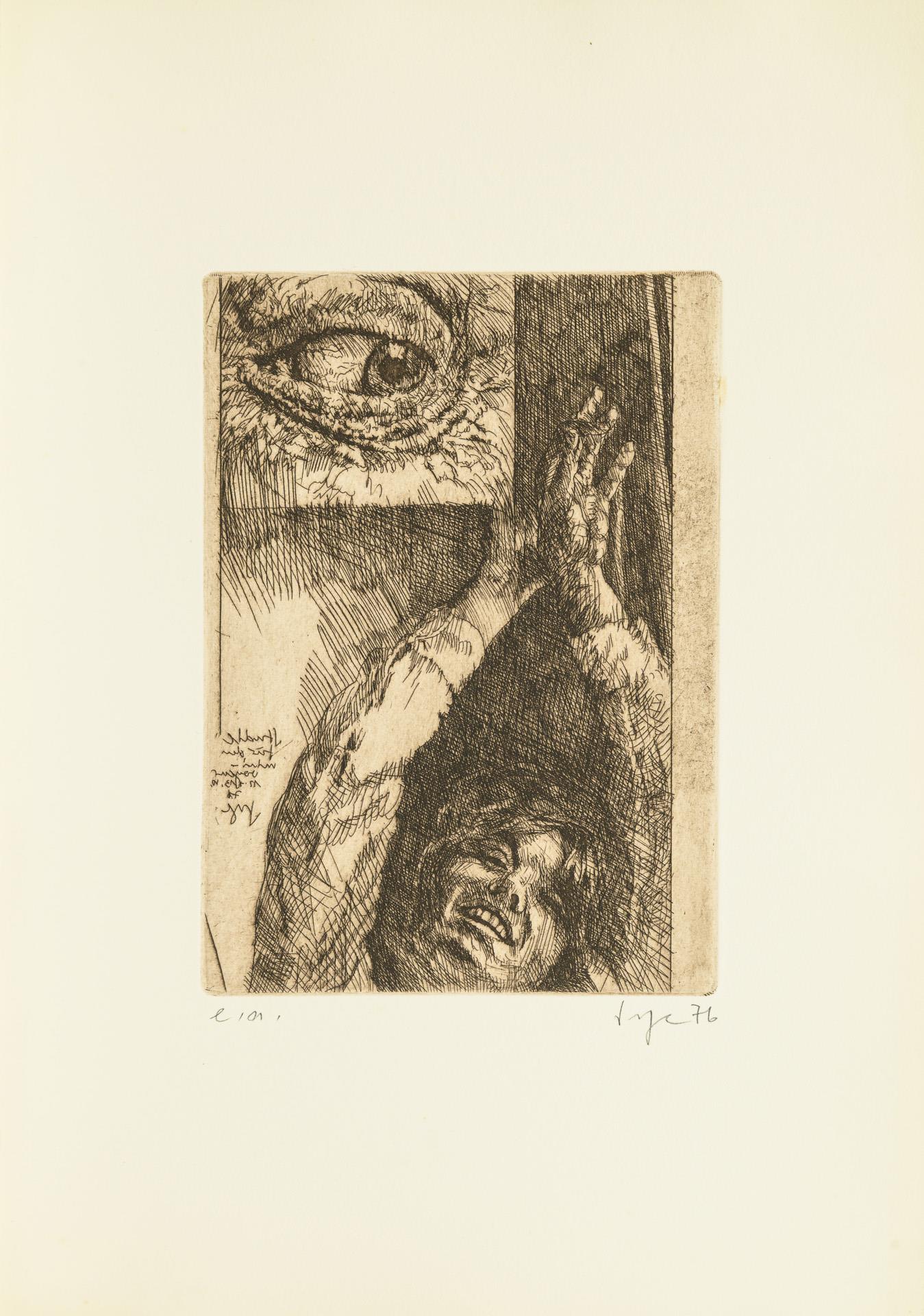 Meist großformatige Arbeiten, nur drei Blätter in A4-ähnlichem Format. Blätter nummeriert mit 50er Auflagen oder als Künstlerexemplar bezeichnet.