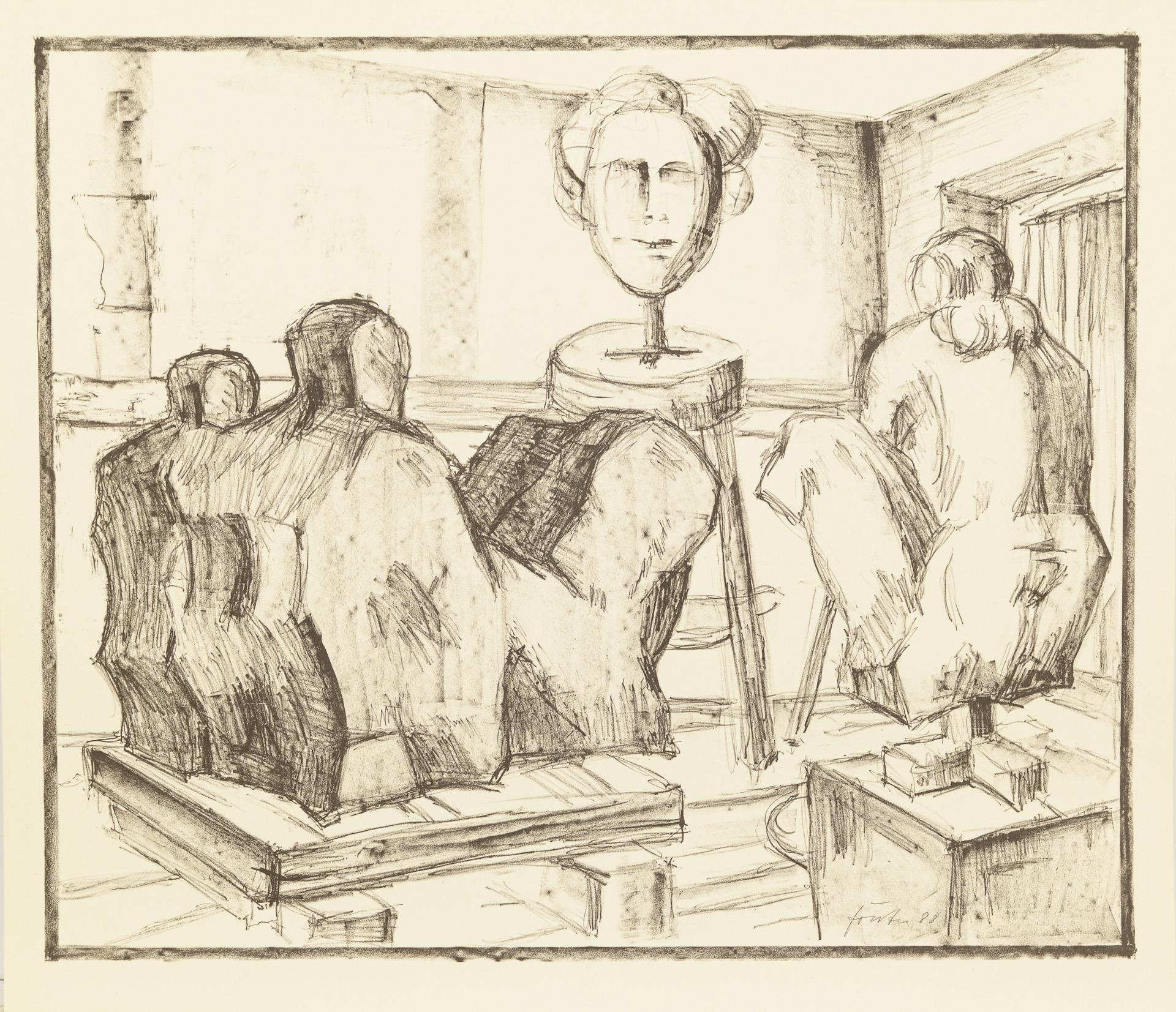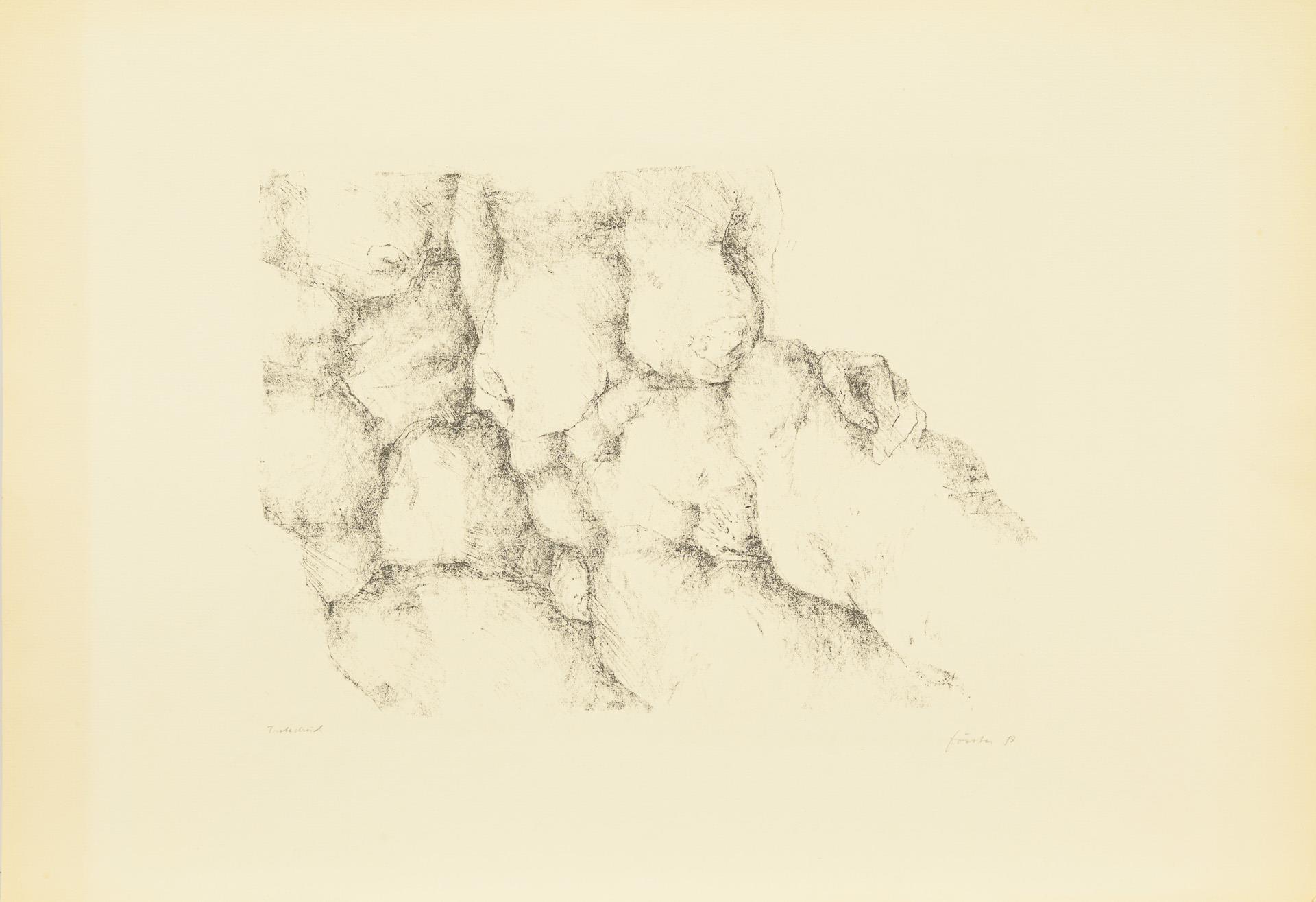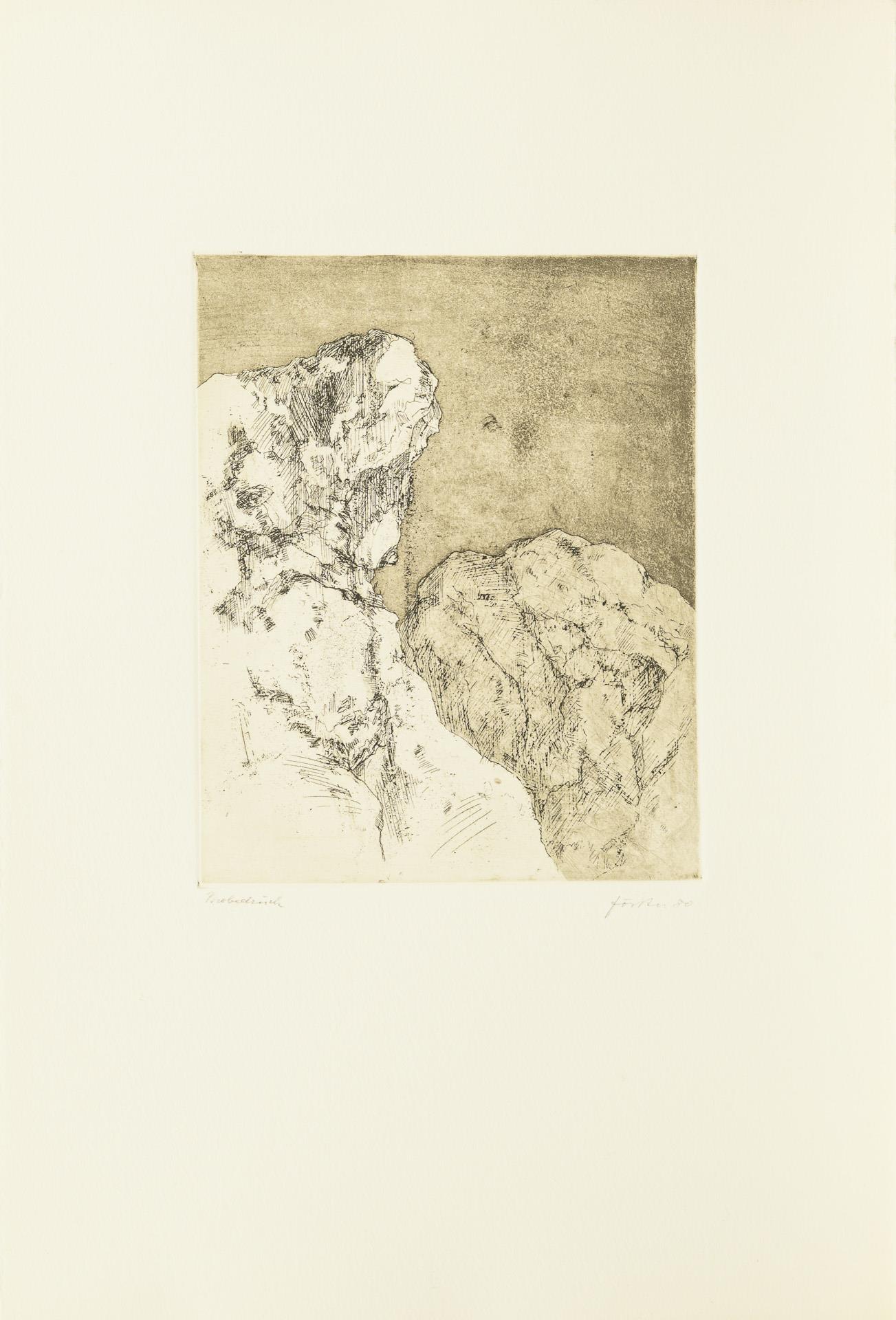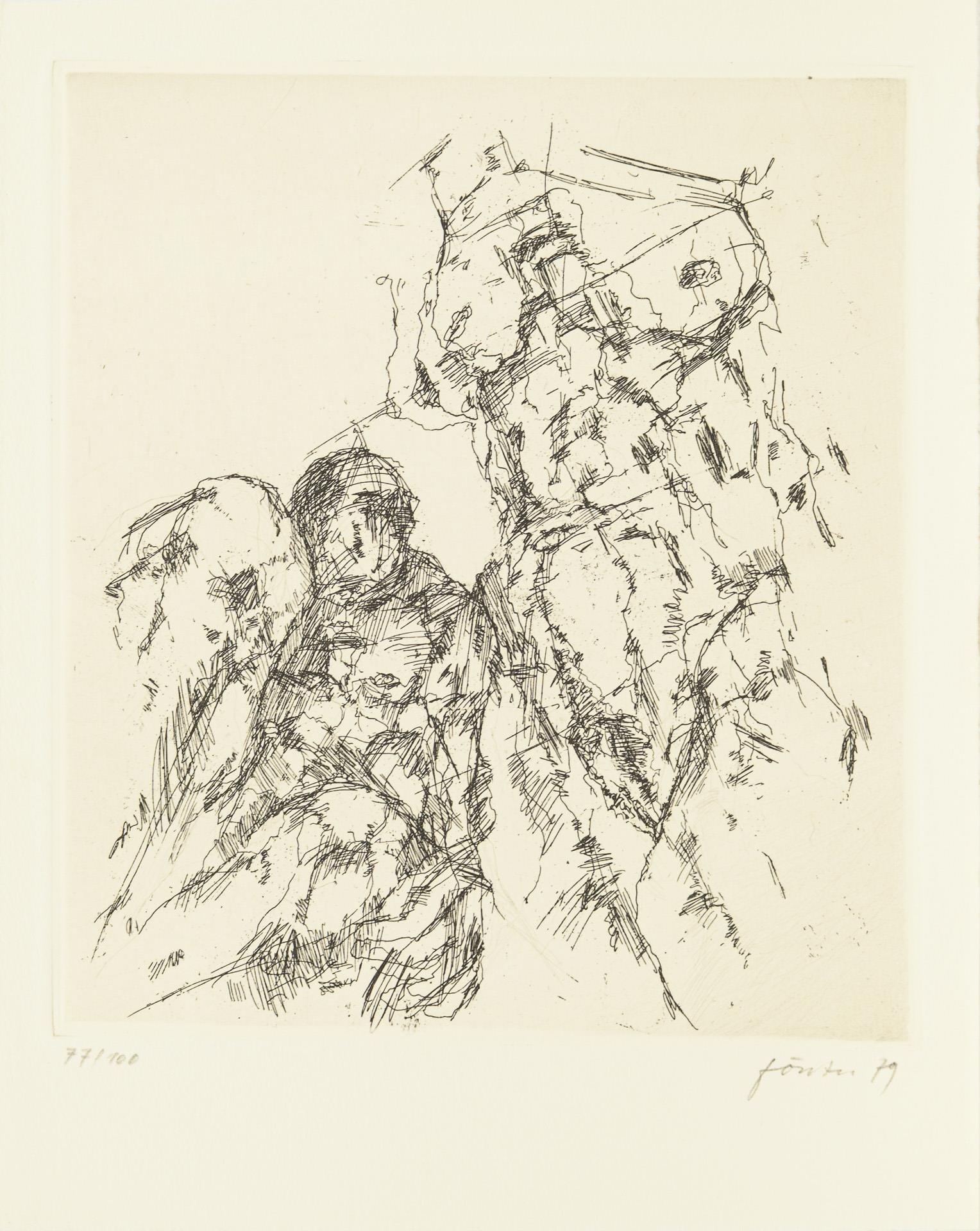 Hauptsächlich als Probedrucke bezeichnete Arbeiten in unterschiedlichen Formaten. Dazu Buch: "Liebe und Tod, Werklinien, Wieland Förster, Plastik und Zeichnungen", Magdeburg 1995, 94 Seiten mit einer beiliegenden Originalgrafik (nummeriert 42/50, signiert und datiert (19)95. / Buch "Werner Stötzer, Neue Arbeiten", Neuer Berliner Kunstverein 1995, 45 Seiten, mit einer beiliegenden Originalradierung (Handsignatur, nummeriert 14/50, 1995). Eine Lithographie mit Knick in der Ecke, sonst nur minimale Altersspuren.