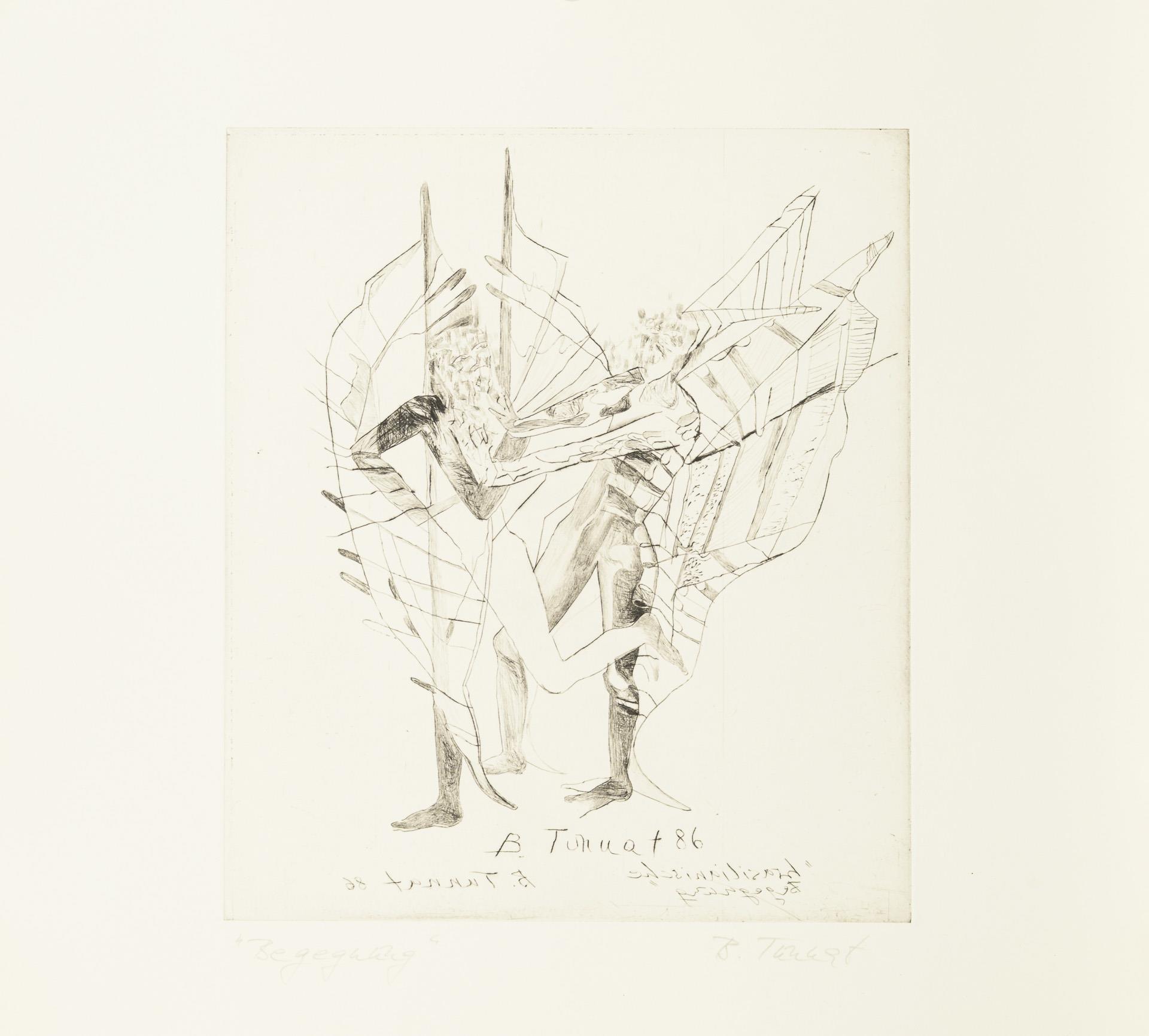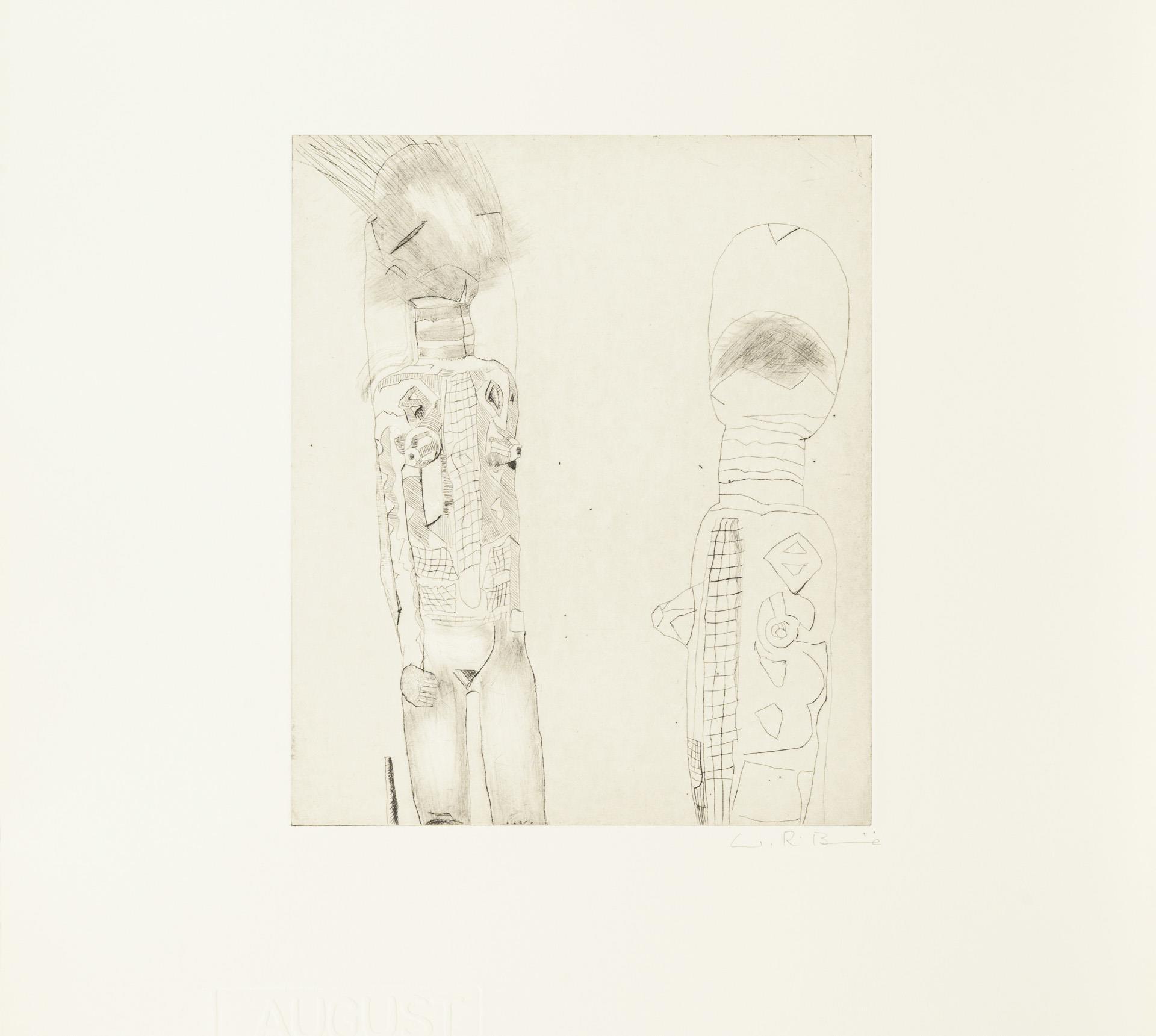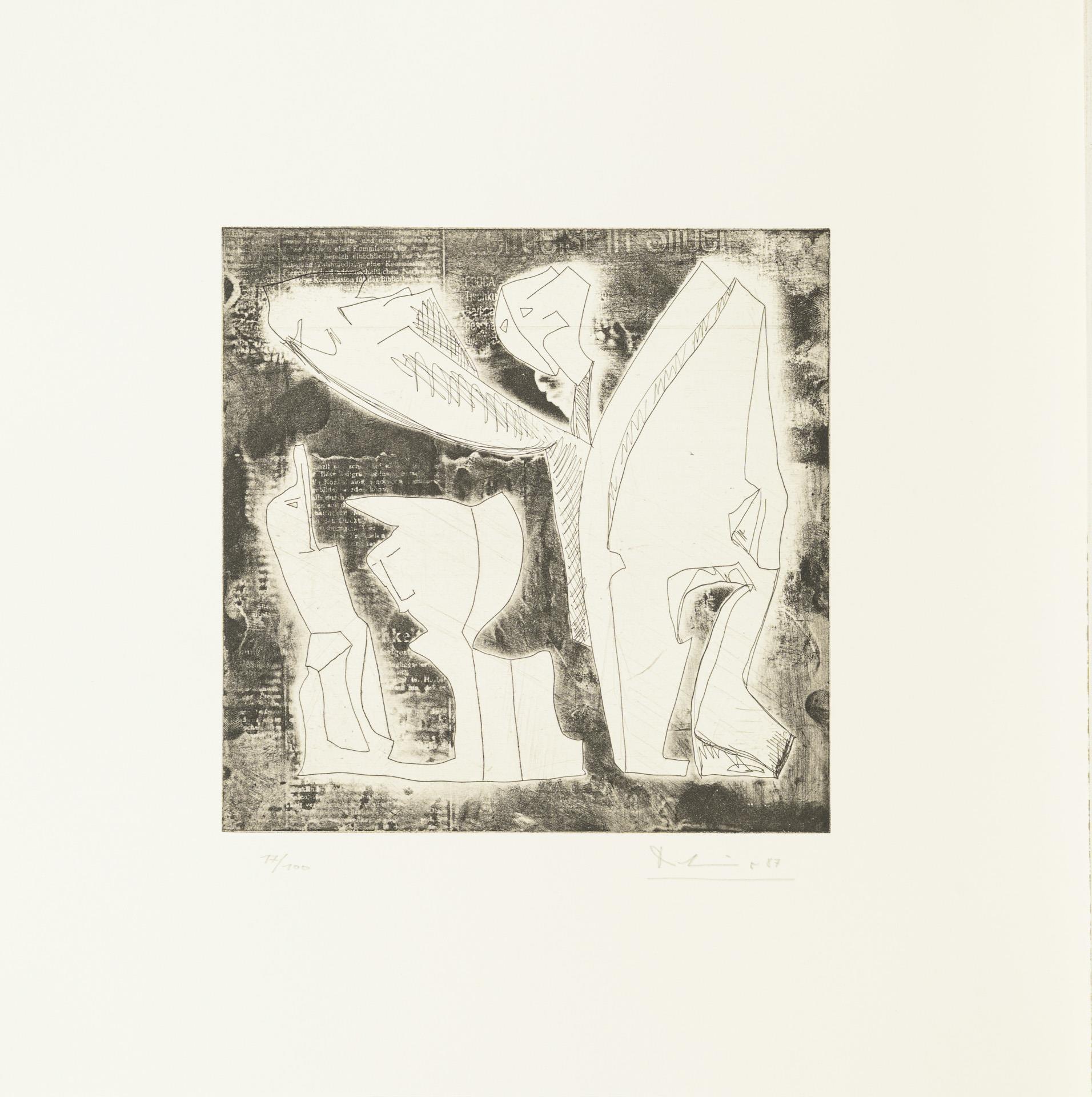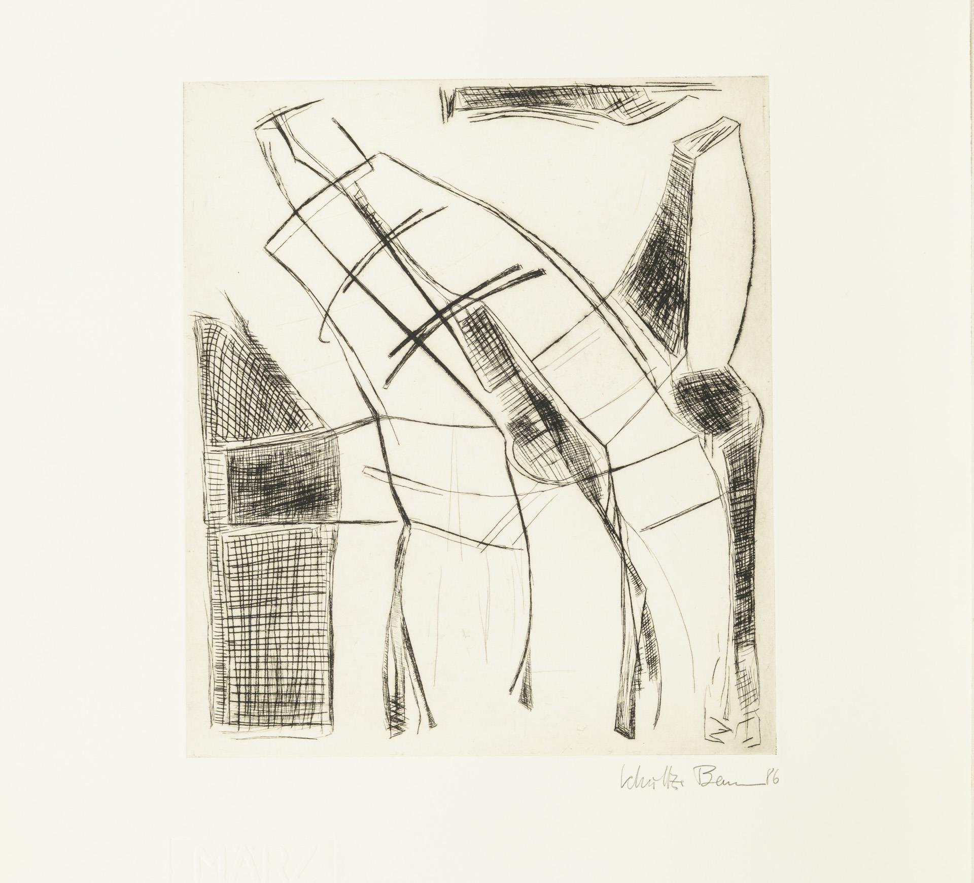 11 von 12 einzelnen Blättern und Inhaltsverzeichnis mit Grafiken von Bildhauern. Hans Müller; Bettina Tunnat-Böhme; Joachim Fritz Schultze-Bansen; Thomas Gerdesmann; Albert Müller; Barbara Matuszek; Rudi Pabel; Wolfgang Bouvié; Herbert Press; Justus Chrukin; Bernd Münster. Auflage von 100 Exemplaren. Blätter teils mit Blindprägungen des Kalendariums.