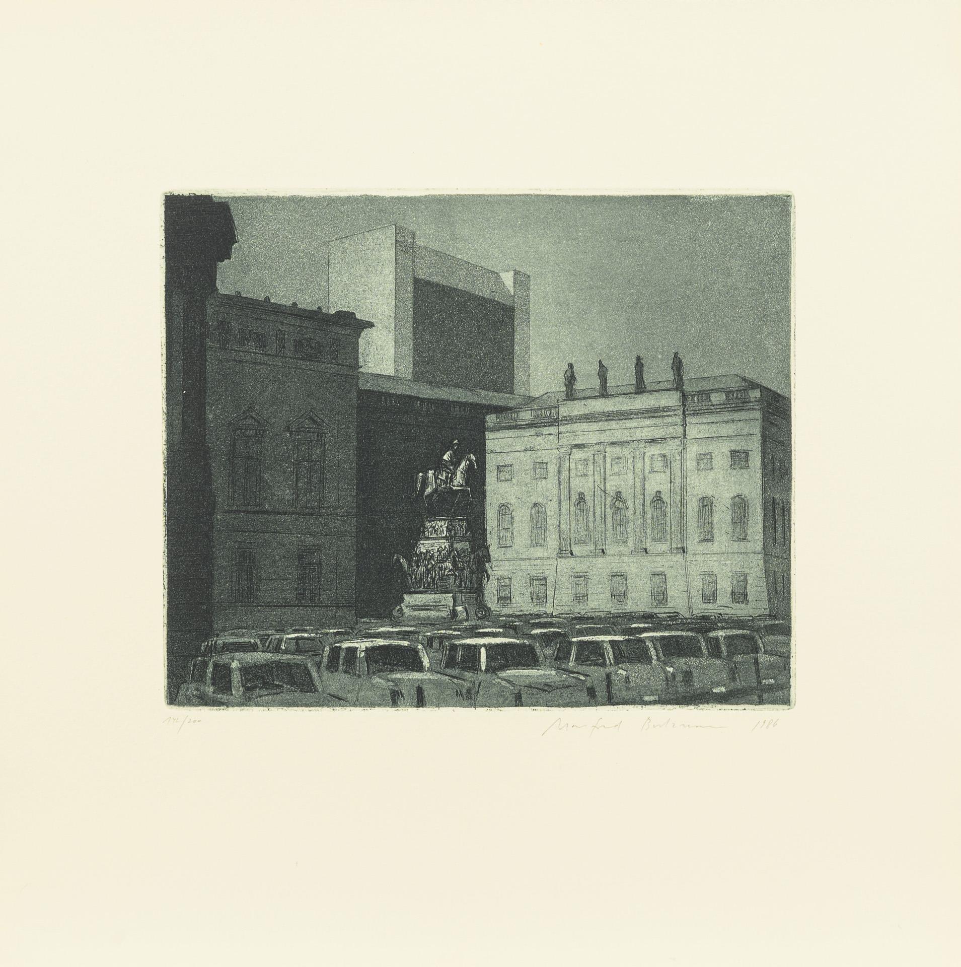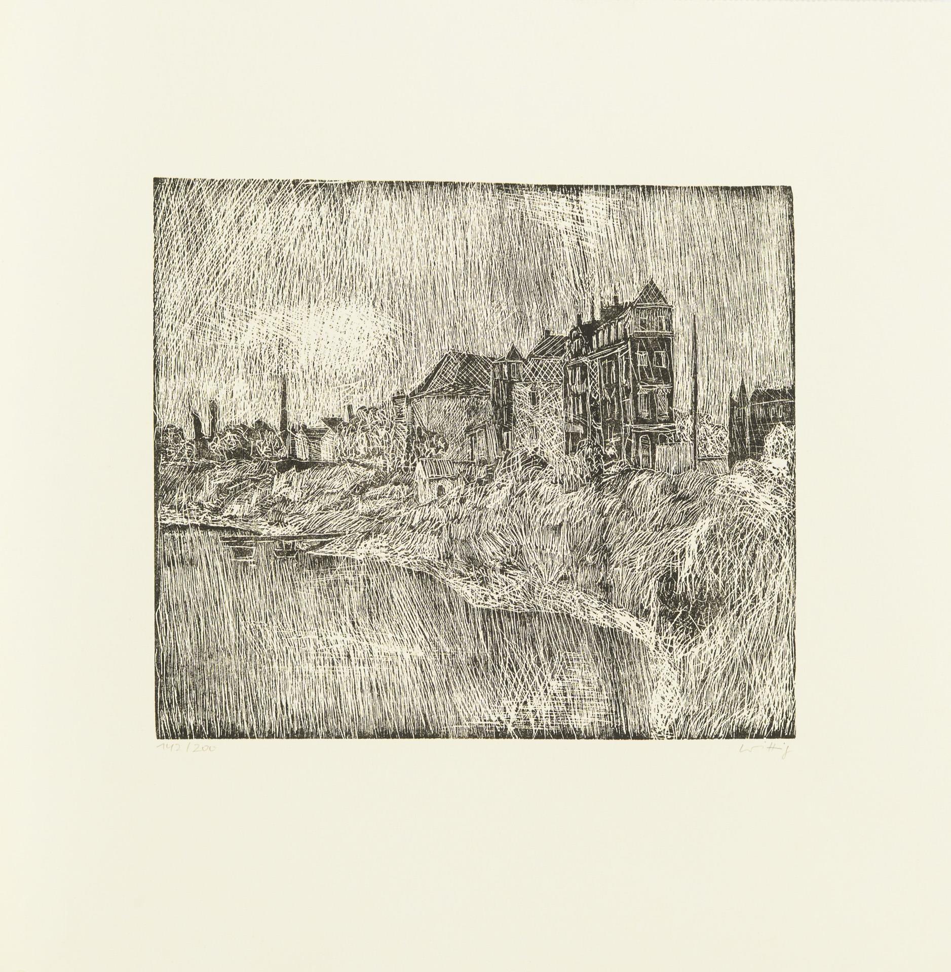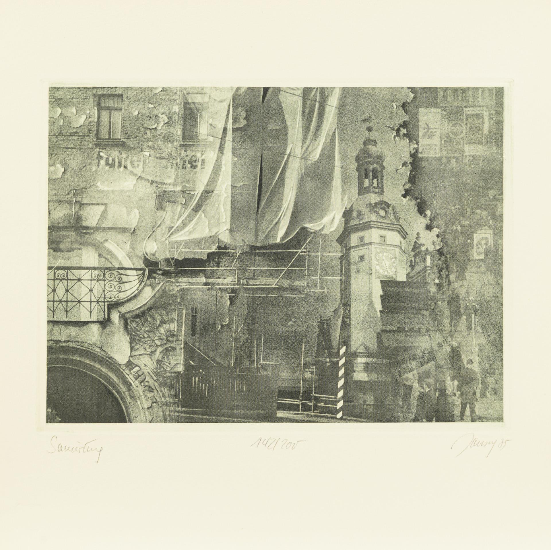 12 lose Grafiken und Inhaltsverzeichnis, ohne Kalendarium. Alle nummeriert 142/200, Blindstempel "Grafikedition". Veronika Wagner; Manfred Zoller; Manfred Butzmann; Horst Peter Meyer; Gisela Neumann, Joachim Jansong; Wieland Förster; Andreas Drees, Gerenot Richter; Werner Wittig; Manfred Kastner; Baldwin Zettl.