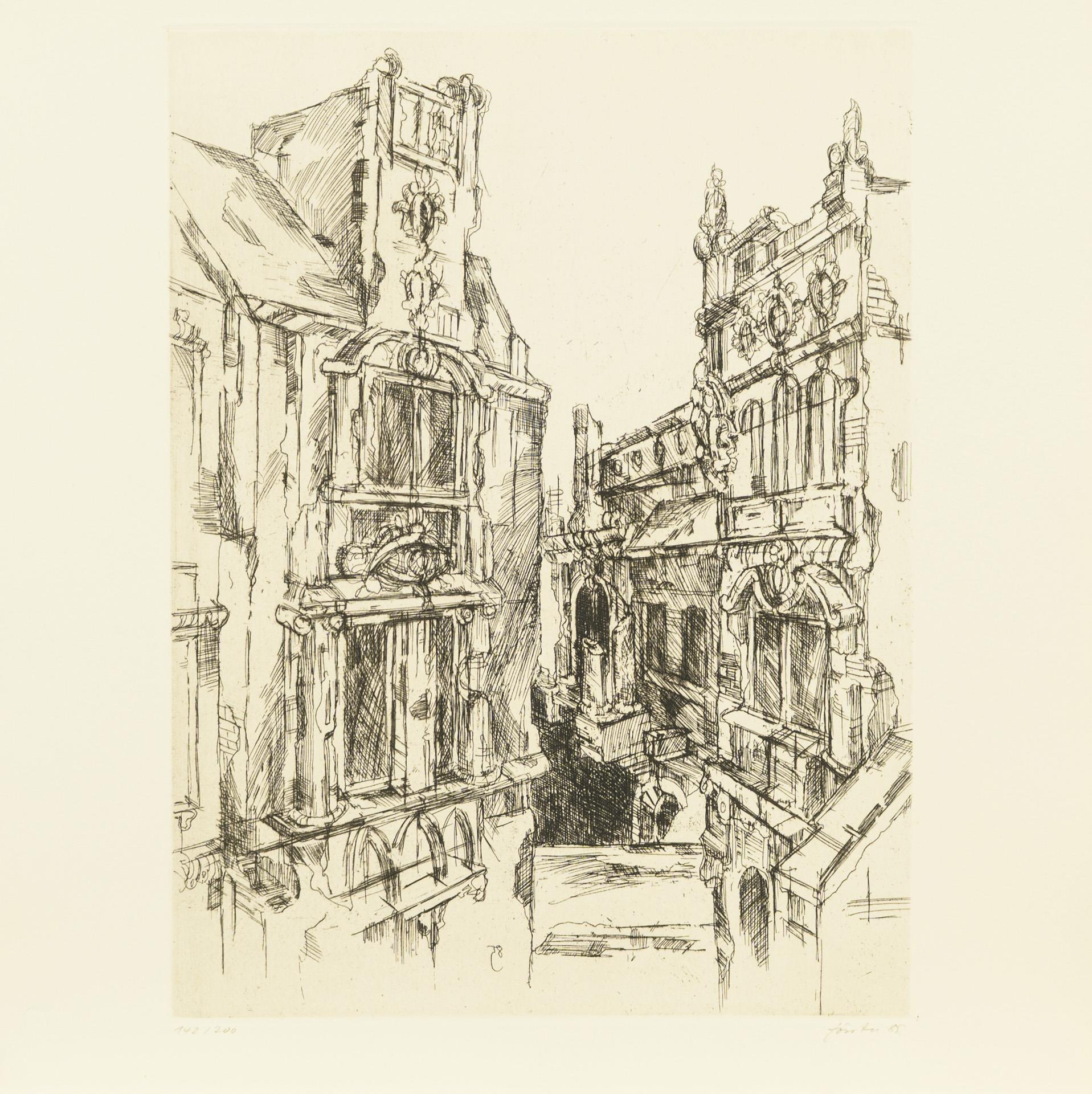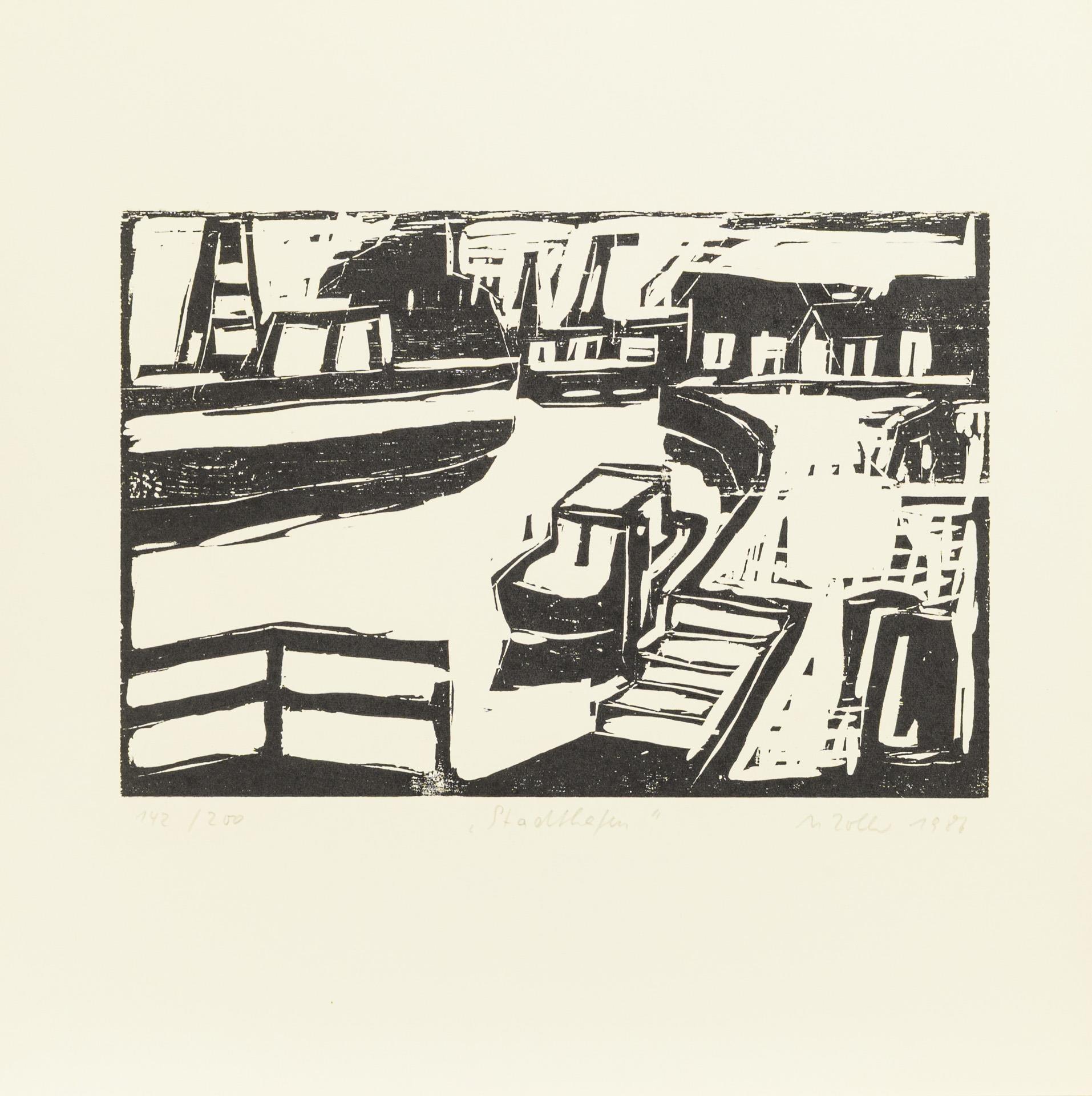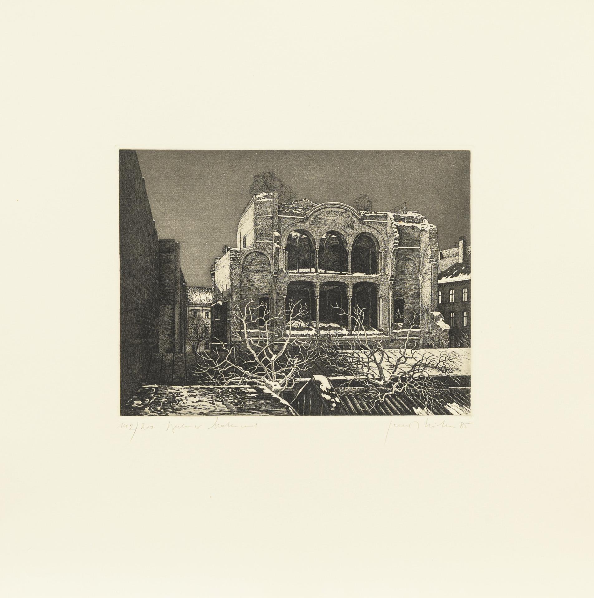 12 lose Grafiken und Inhaltsverzeichnis, ohne Kalendarium. Alle nummeriert 142/200, Blindstempel "Grafikedition". Veronika Wagner; Manfred Zoller; Manfred Butzmann; Horst Peter Meyer; Gisela Neumann, Joachim Jansong; Wieland Förster; Andreas Drees, Gerenot Richter; Werner Wittig; Manfred Kastner; Baldwin Zettl.
