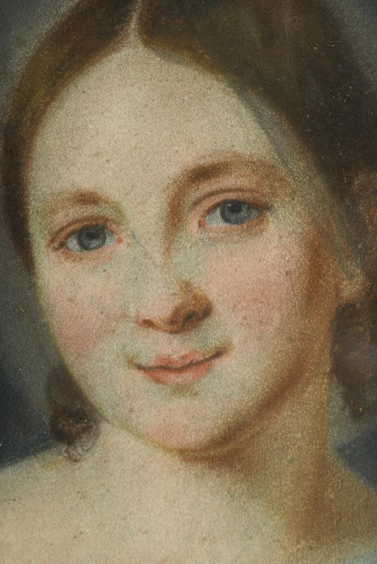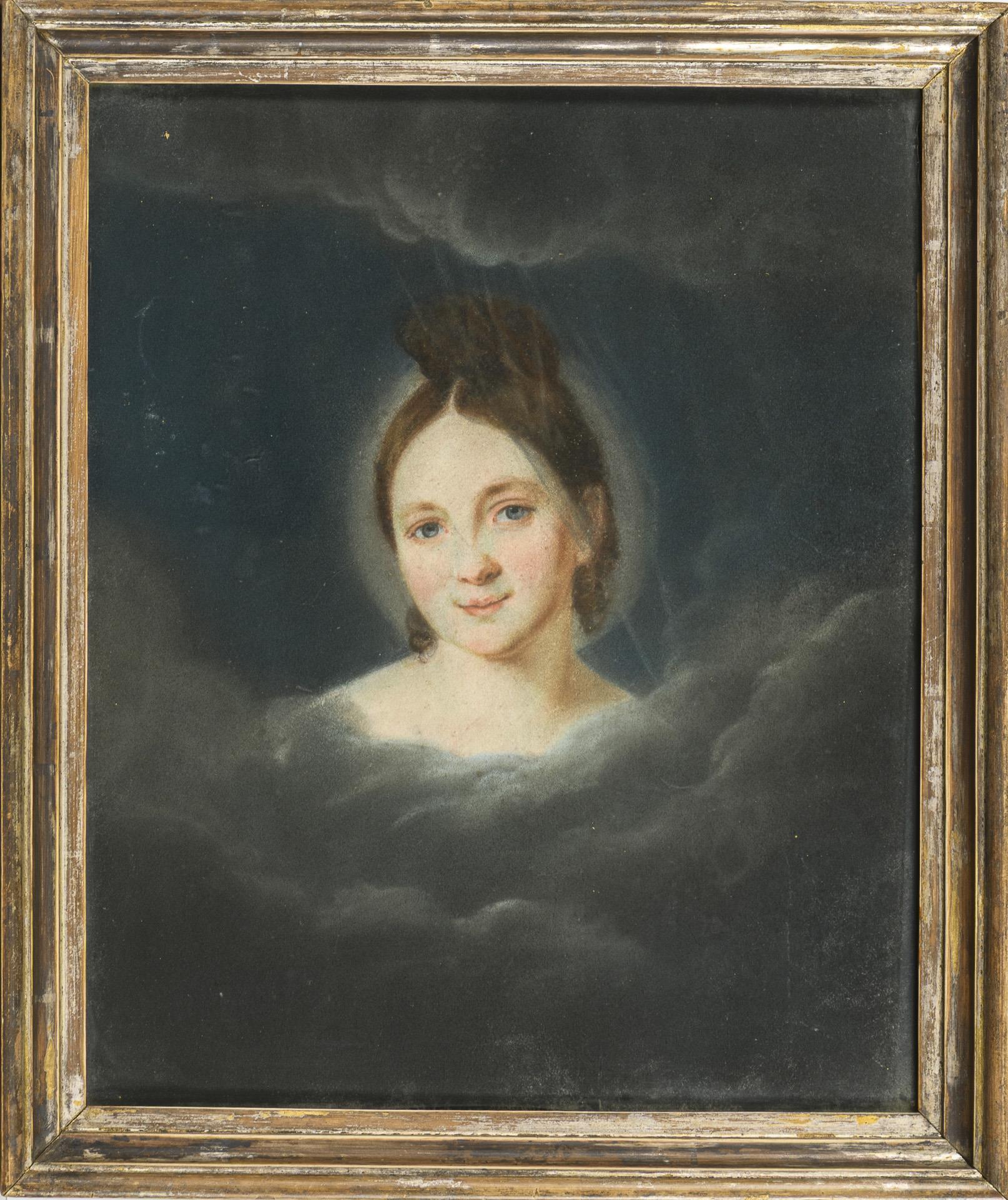 Porträt einer jungen Frau zwischen dunklen Wolken.