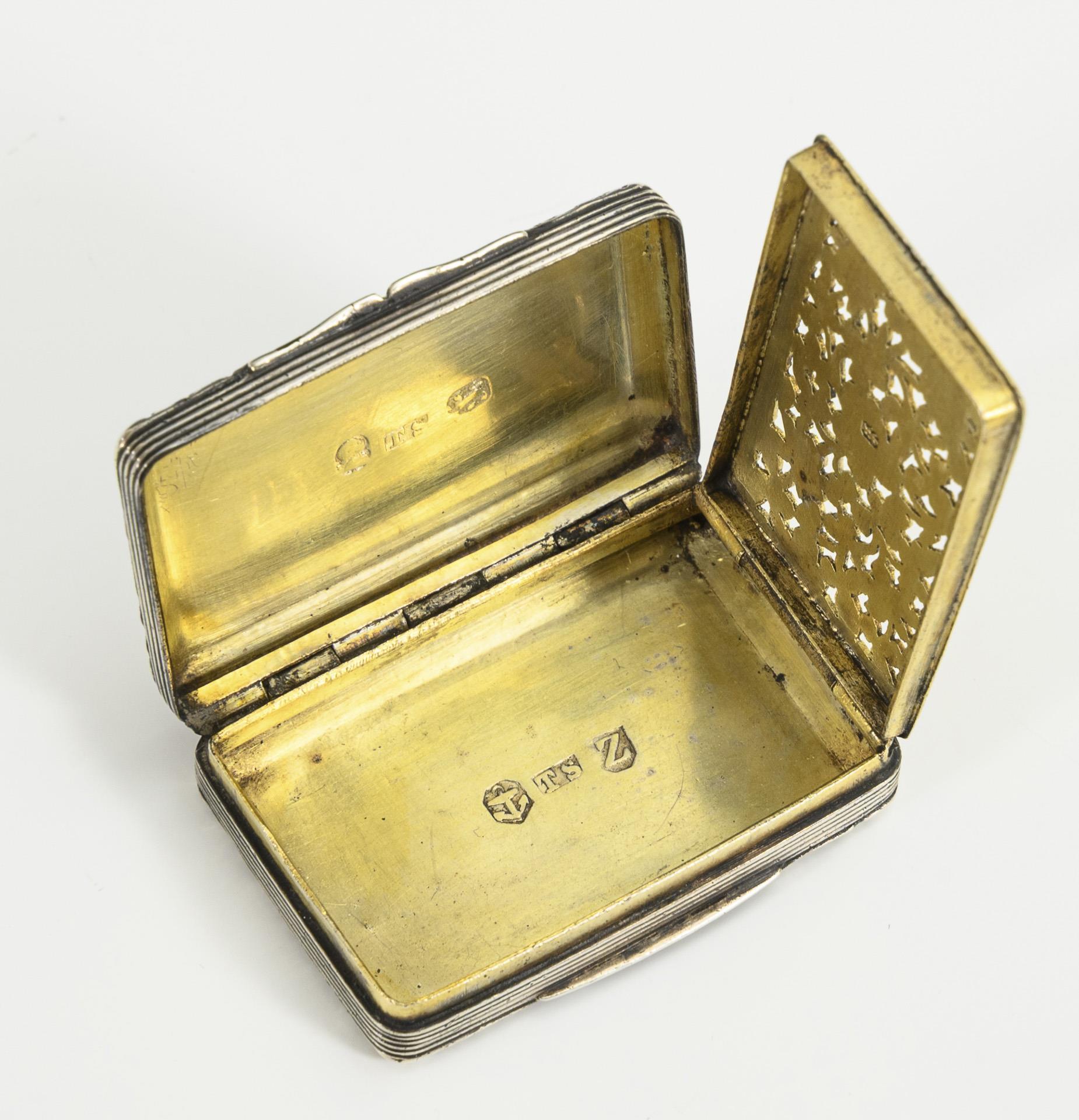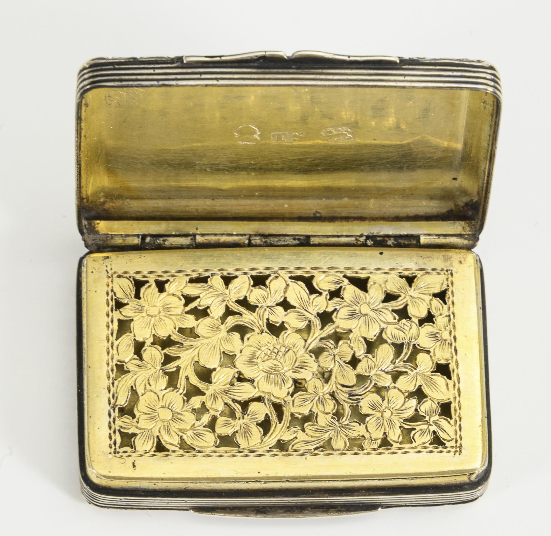 Sogenannte Vinaigrette, mit Guillochedekor und floral durchbrochenem Innendeckel.