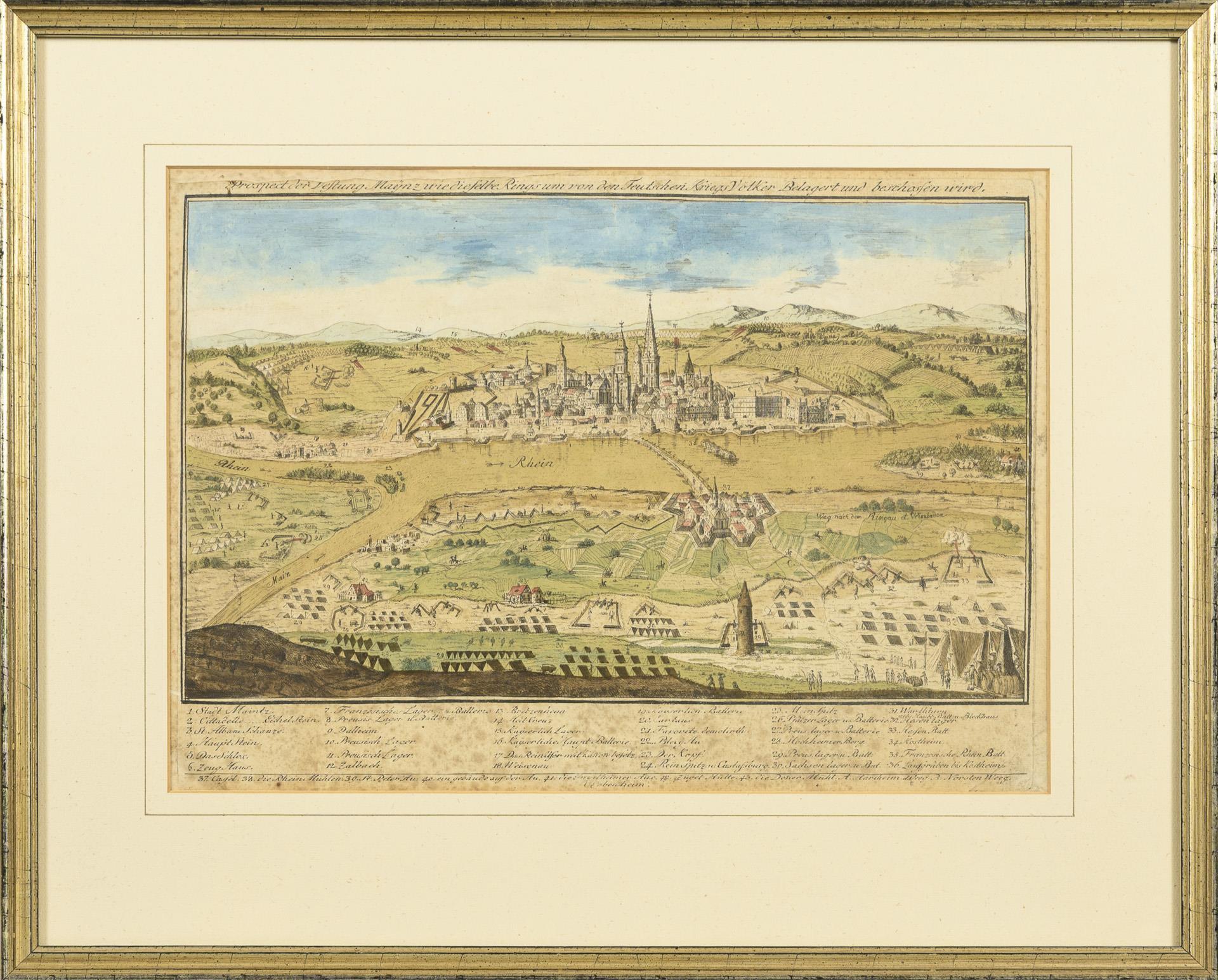 "Prospect der Vestung Maynz wie dieselbe Rings um von den Teutschen KriegsVölker Belagert und beschossen wird". . Im Randbereich stockfleckig.