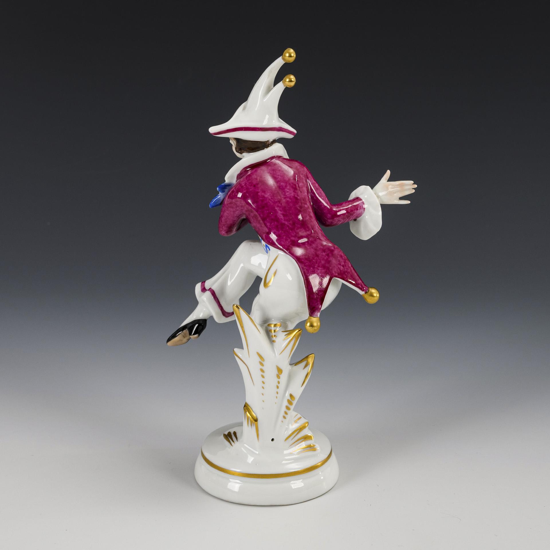 Junger Mann in Tanzpose mit Schellenhut und -jacke.