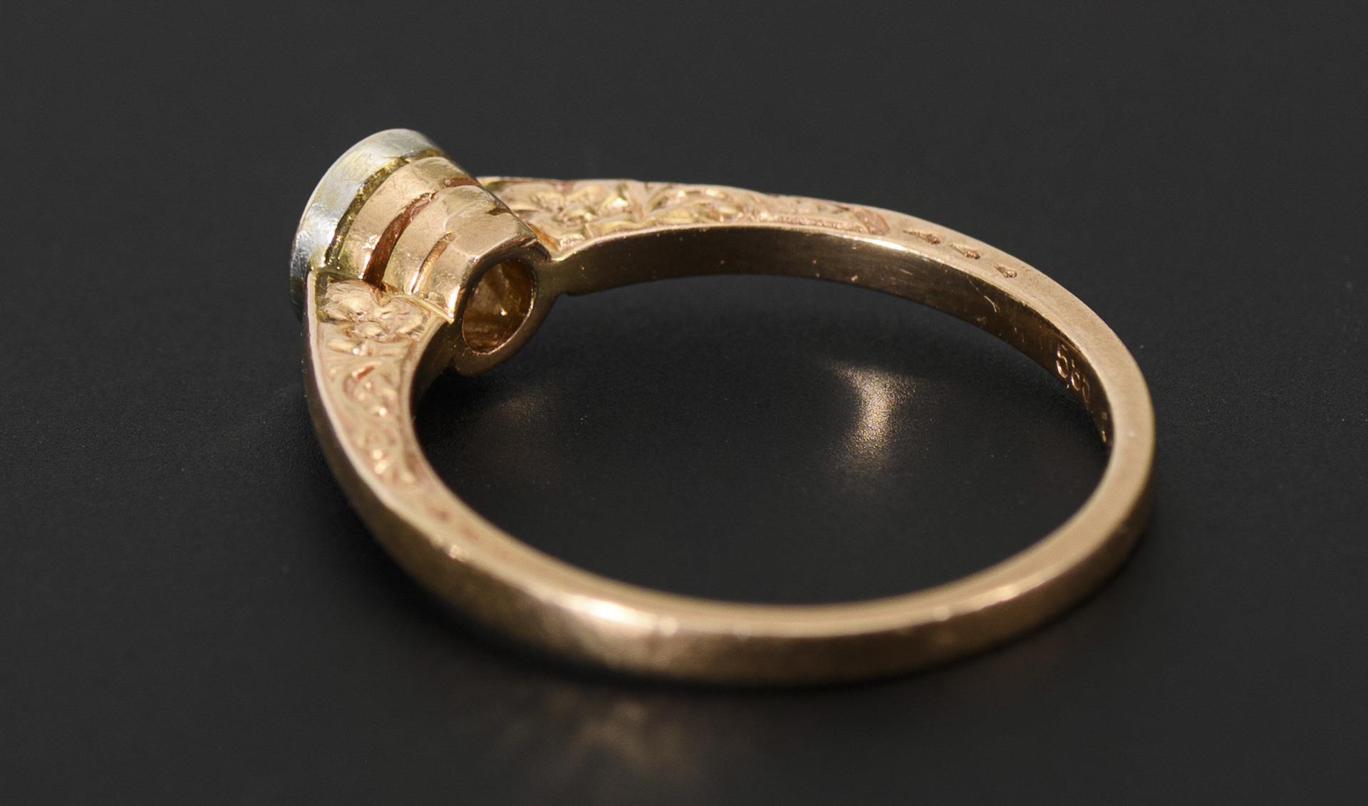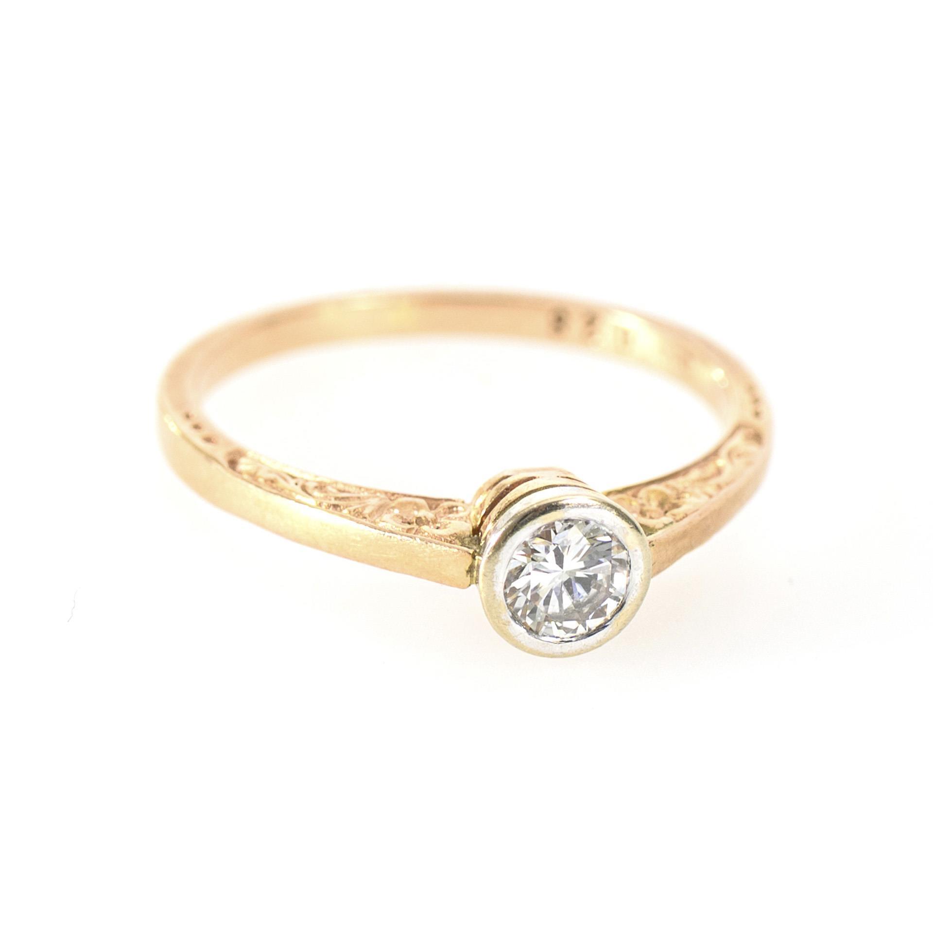 Gelb- und Weißgold 585 gestempelt, Brillant zusätzlich mit 028 [0,28 ct] gestempelt. Ringgröße 52. 2,3 g.