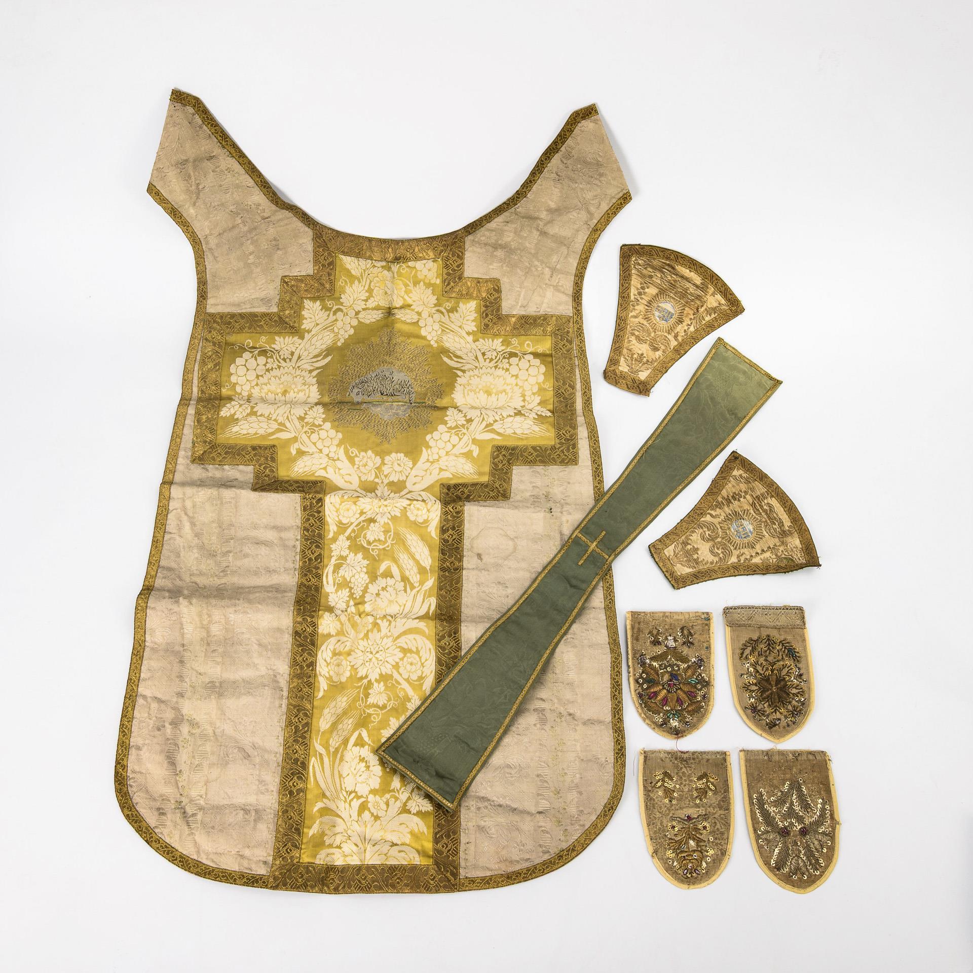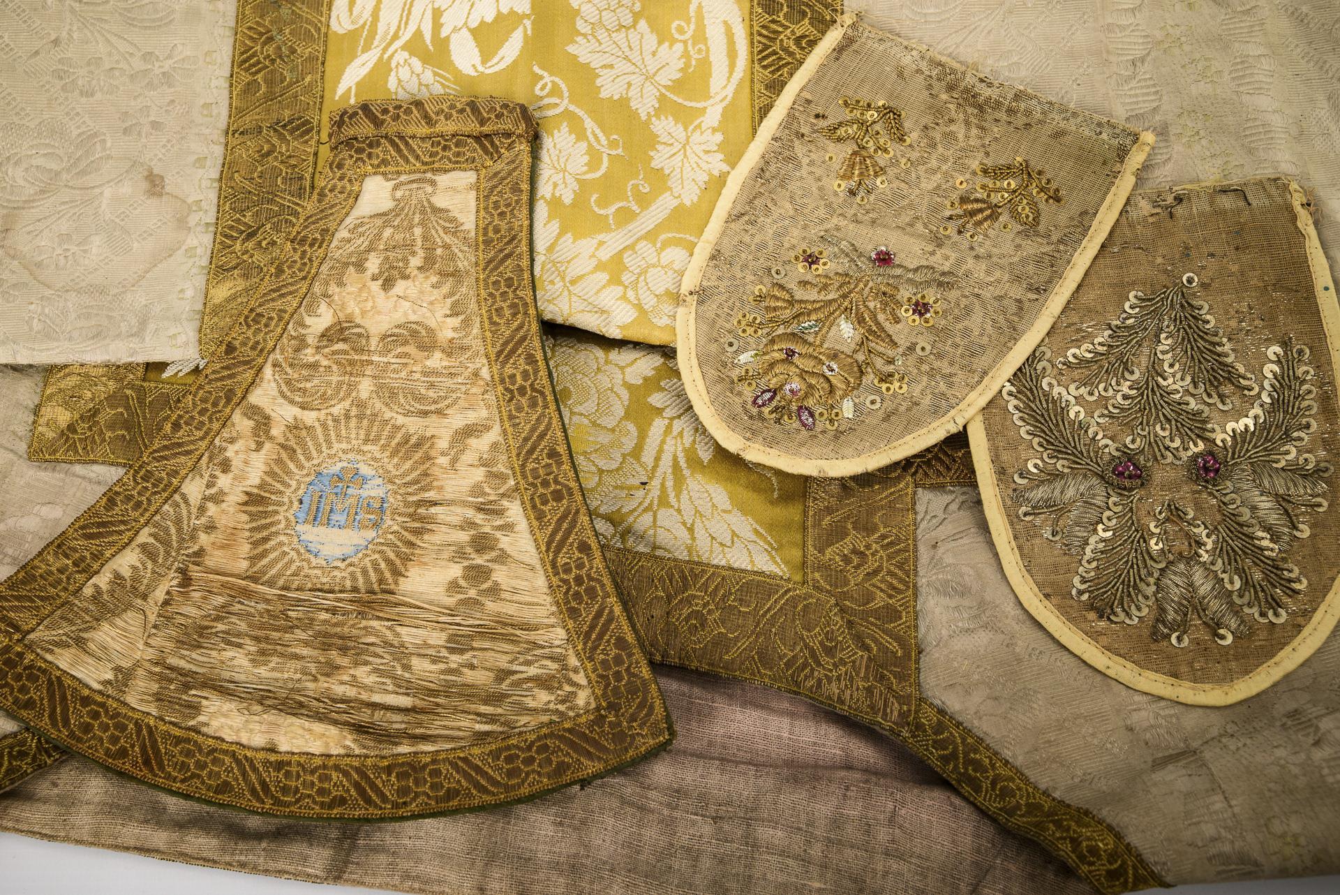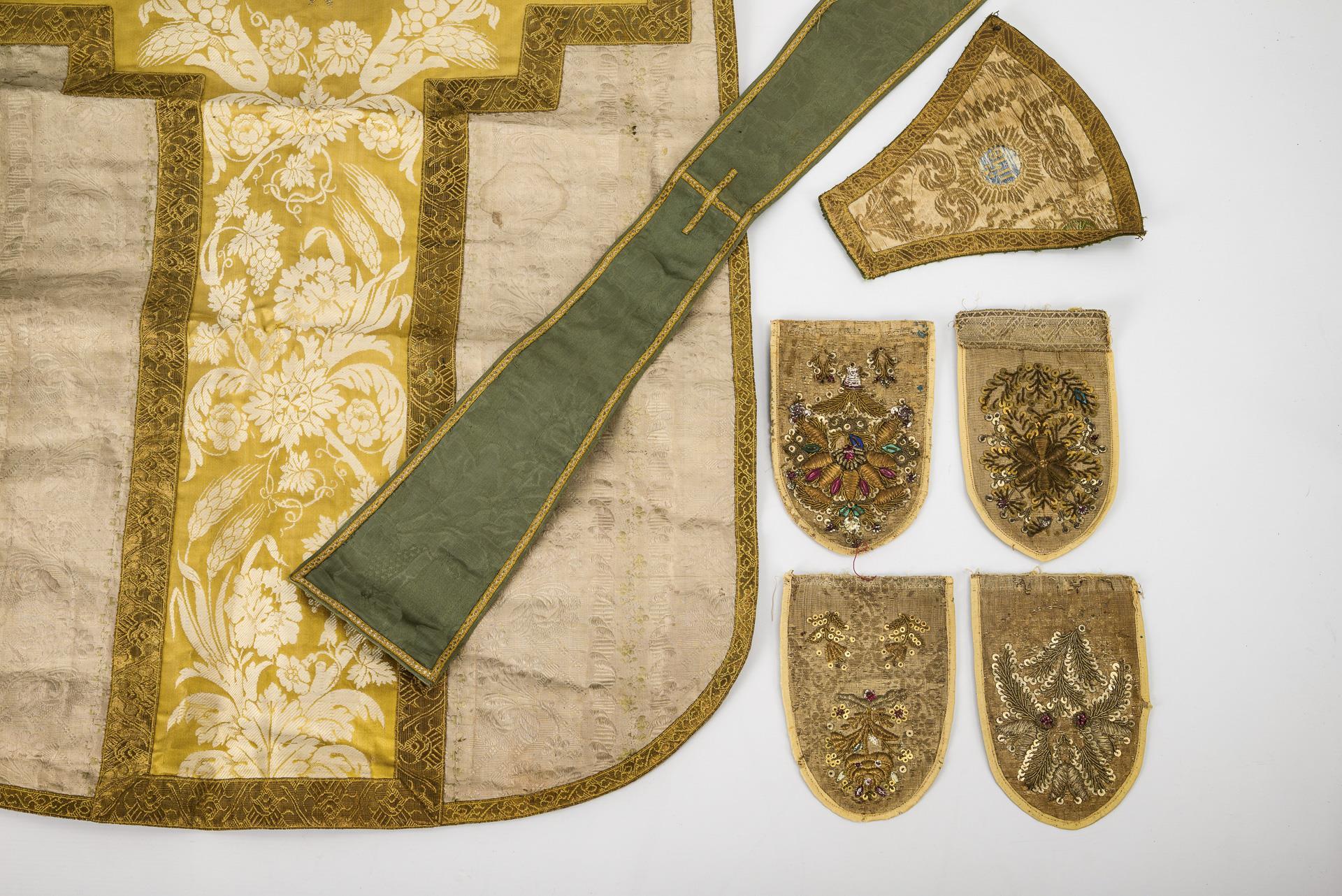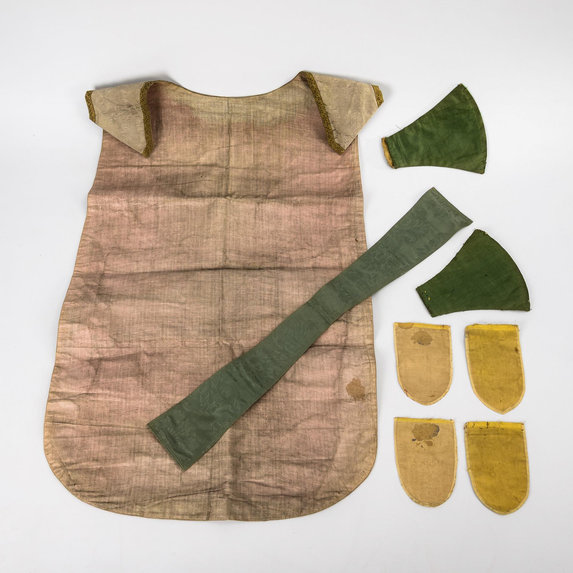 Sie befinden sich hier: Startseite Kategorien Varia Teil einer Kasel, 1 Manipel und 5 Fragmente römisch-liturgischer Kleidung